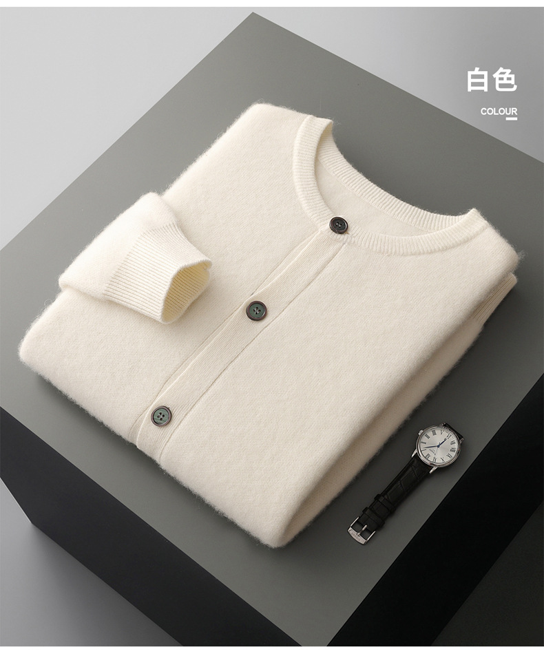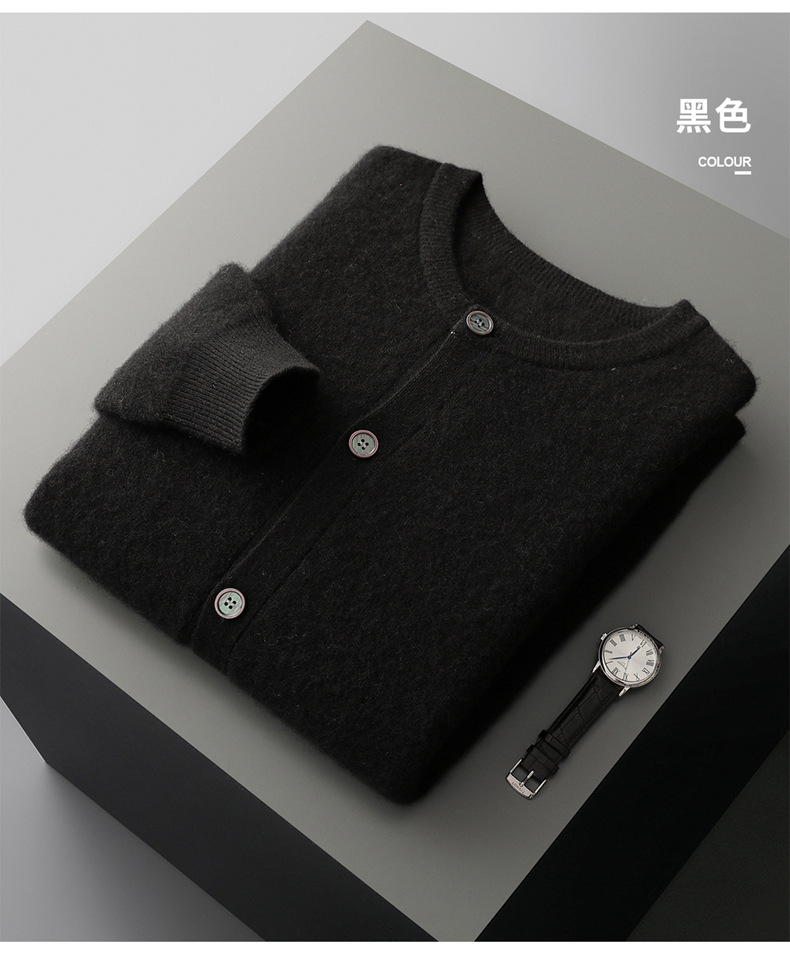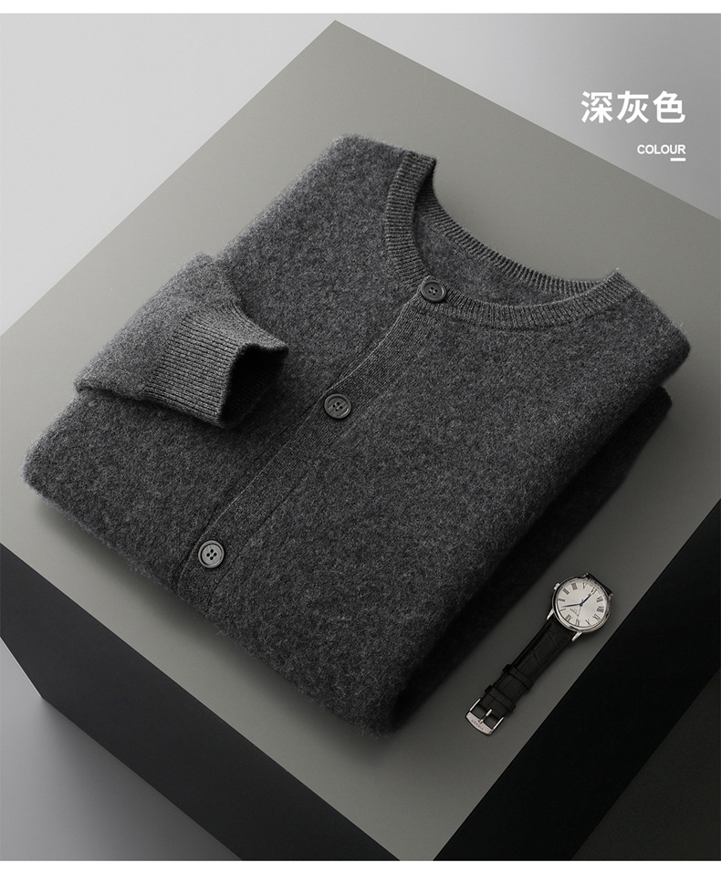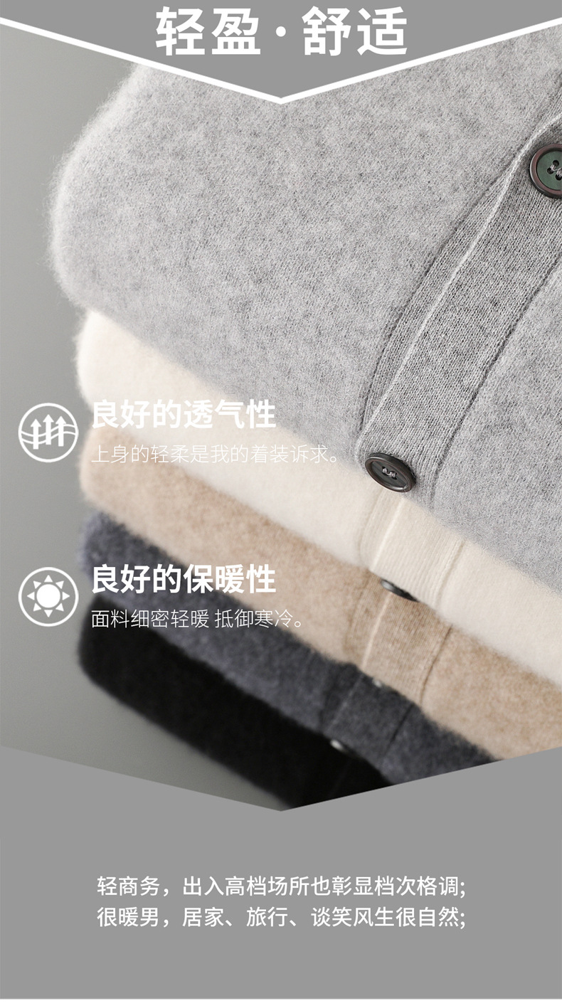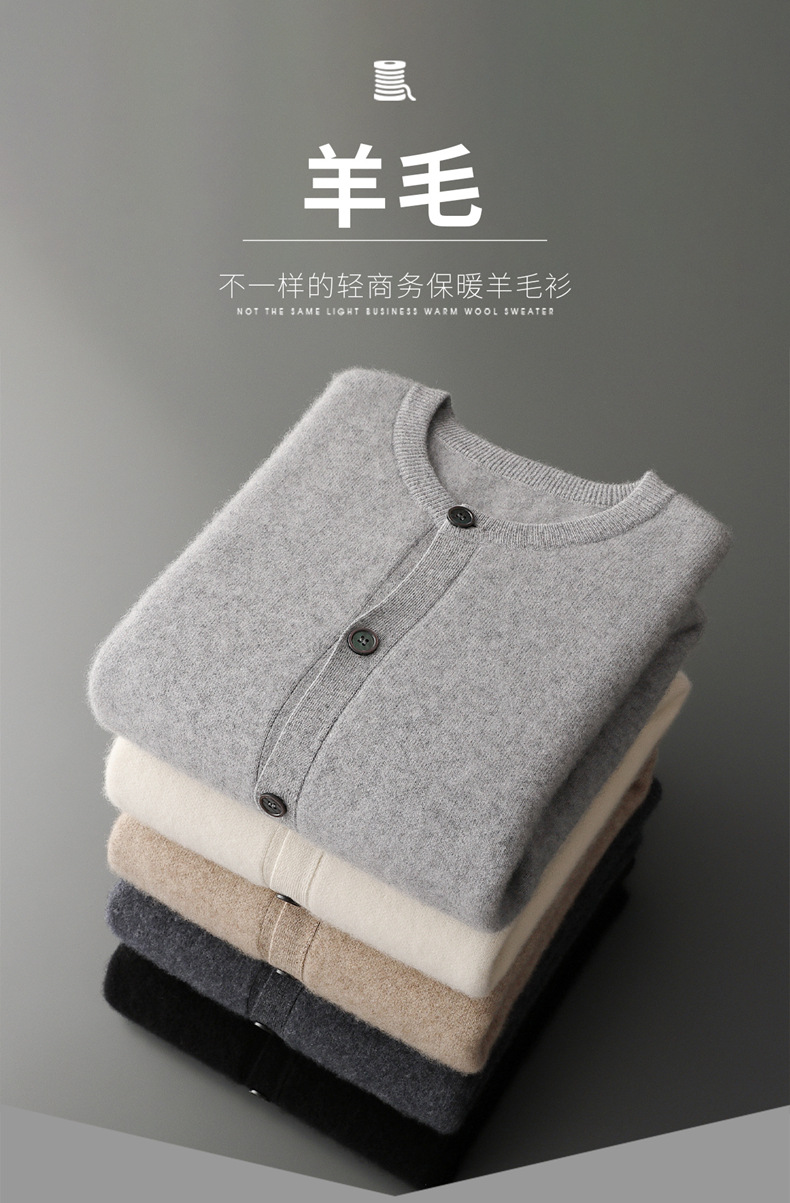 秋冬新款100%纯羊毛开衫男士立领系扣简约宽松加厚针织衫外套毛衣