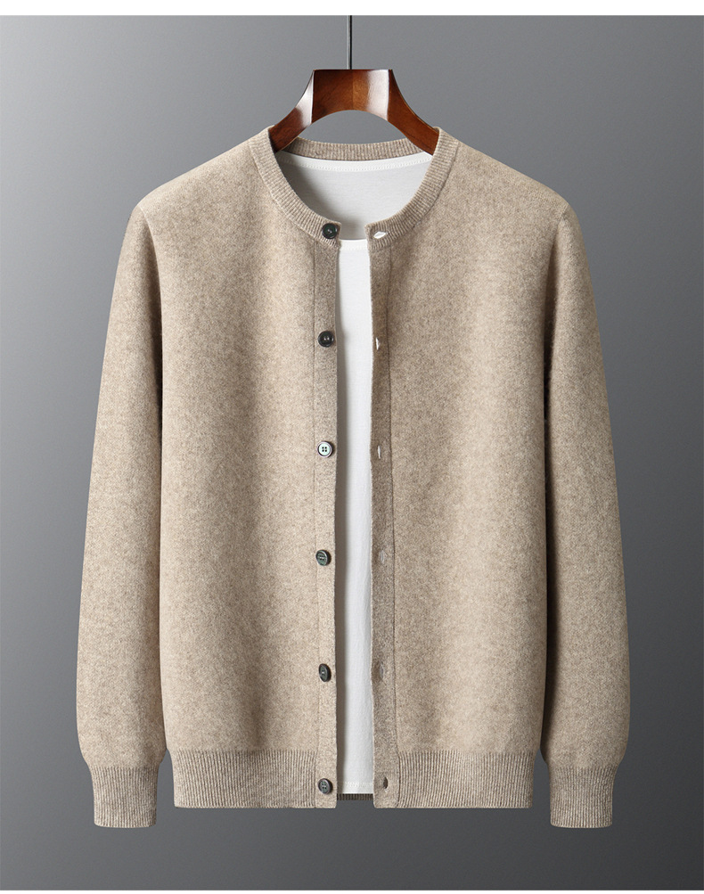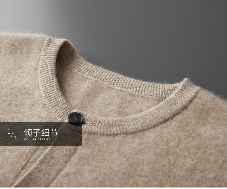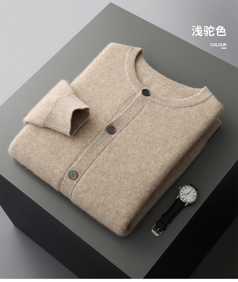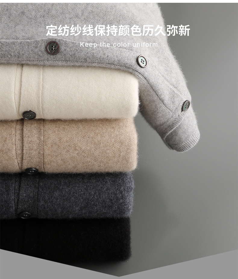 四平加厚系扣100%澳洲羊毛开衫男士圆领针织保暖毛衣外套河北工厂