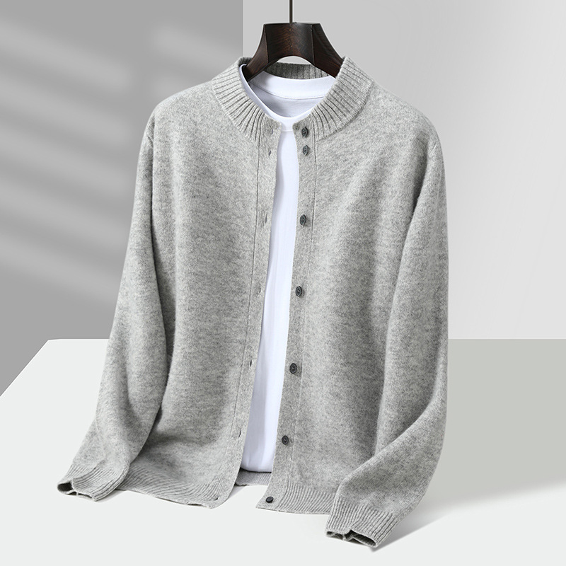 2025春秋新型ウールカーディガン男性立襟ファスナーニットセーターコート保温ゆるいカシミヤズボン男性