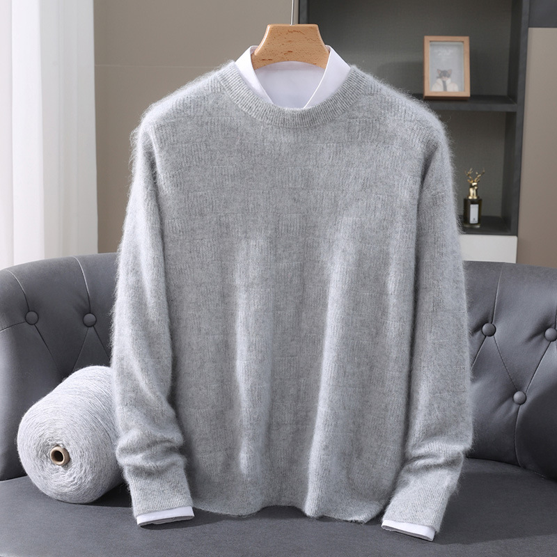 跨境批发秋冬新款水貂绒男士圆领加厚针织保暖毛衣针织衫打底衫男