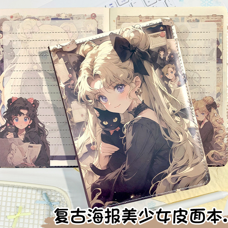 复古海报美少女a5动漫彩页本笔记本学生横线日记本美少女手账本