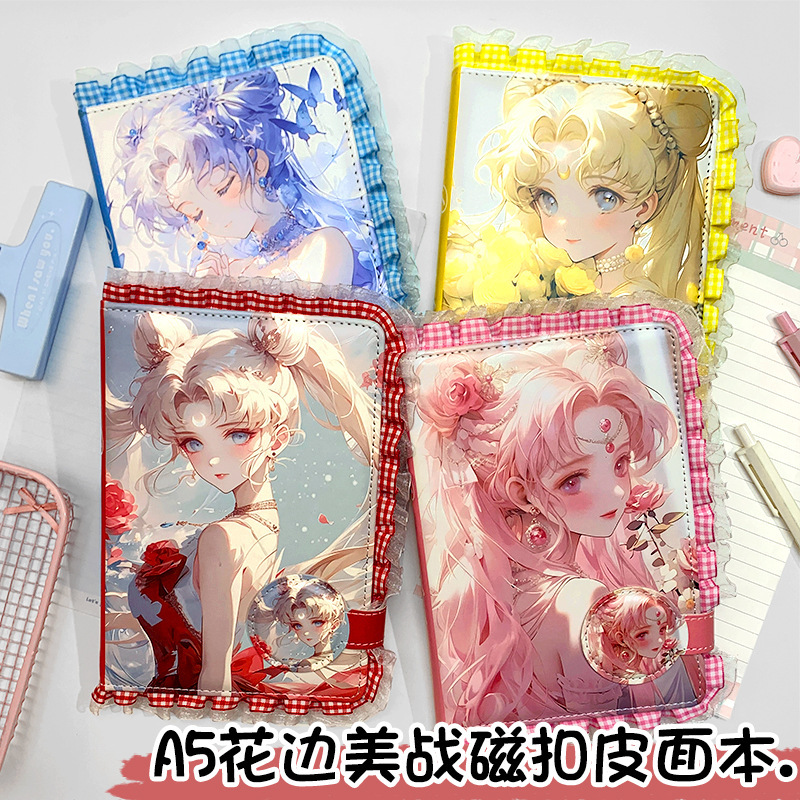 a5蕾丝花边美战磁扣手账本新款美少女战士pu笔记本动漫彩页皮面本