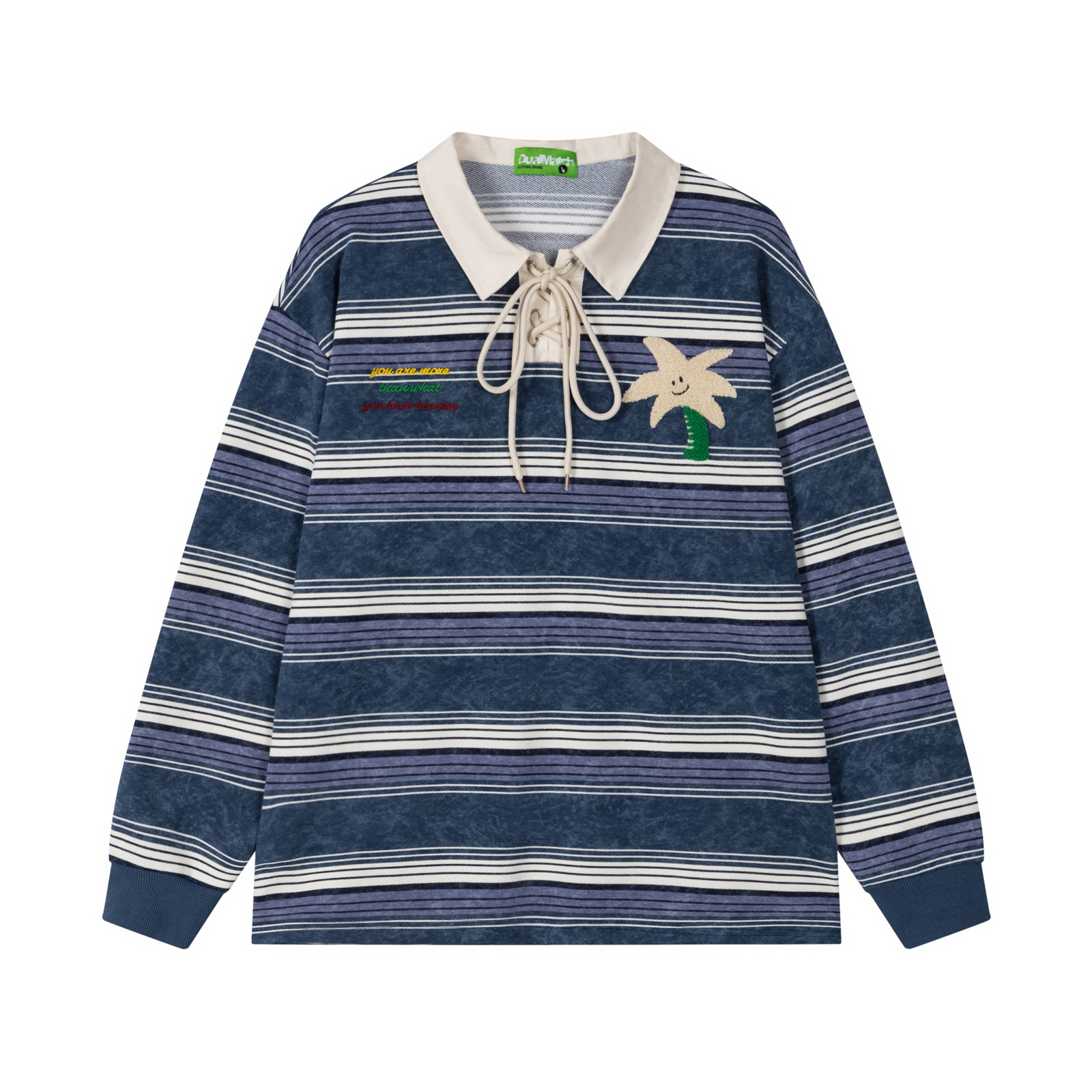2025秋冬美式撞色条纹创意刺绣polo领长袖T恤男女宽松百搭polo衫