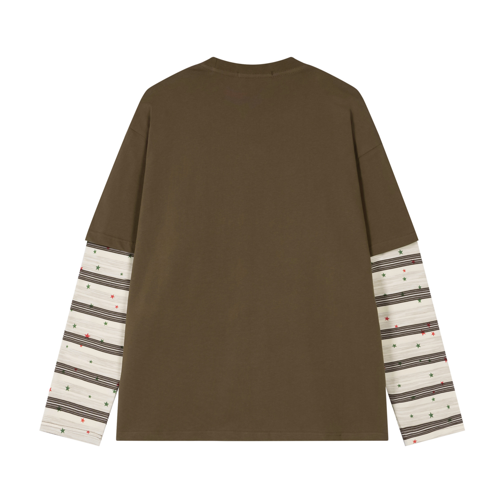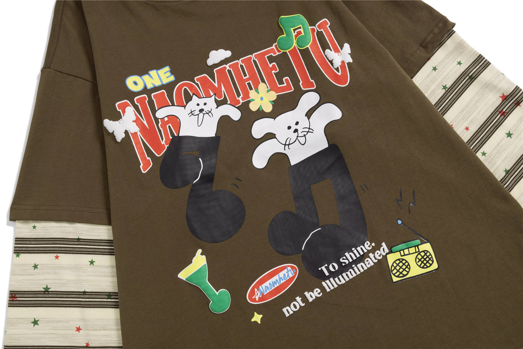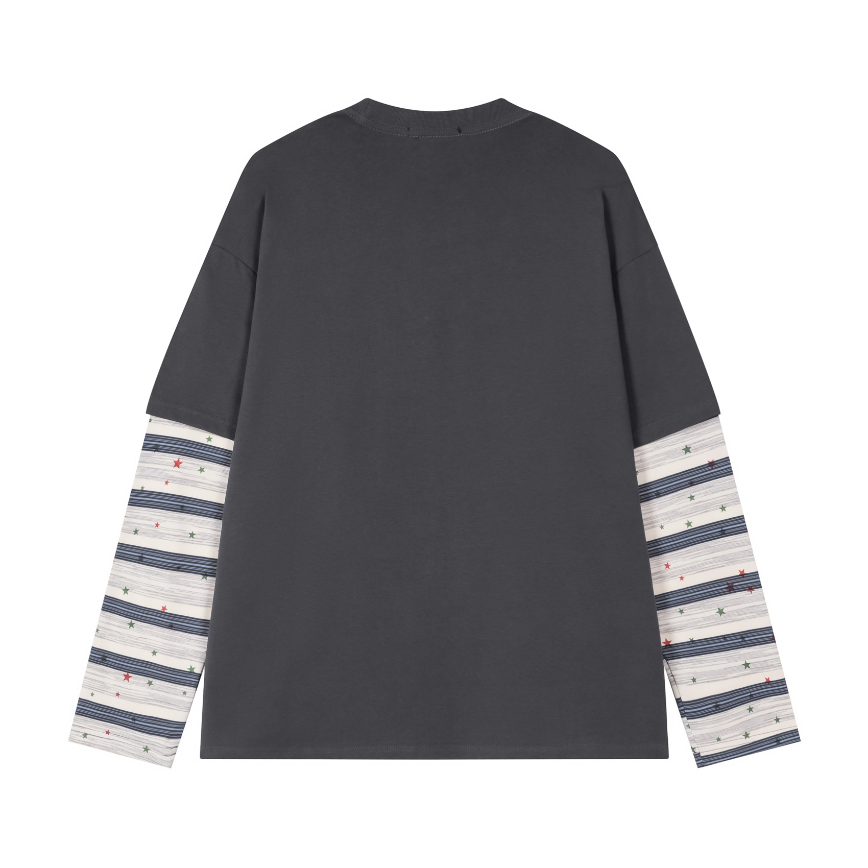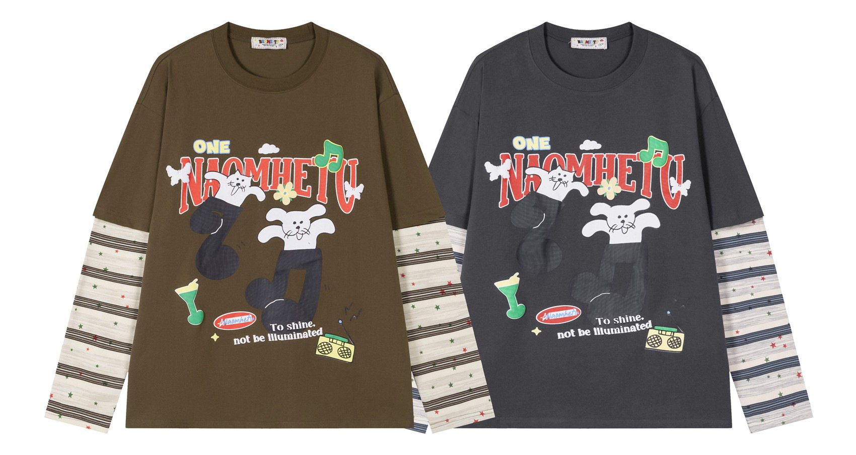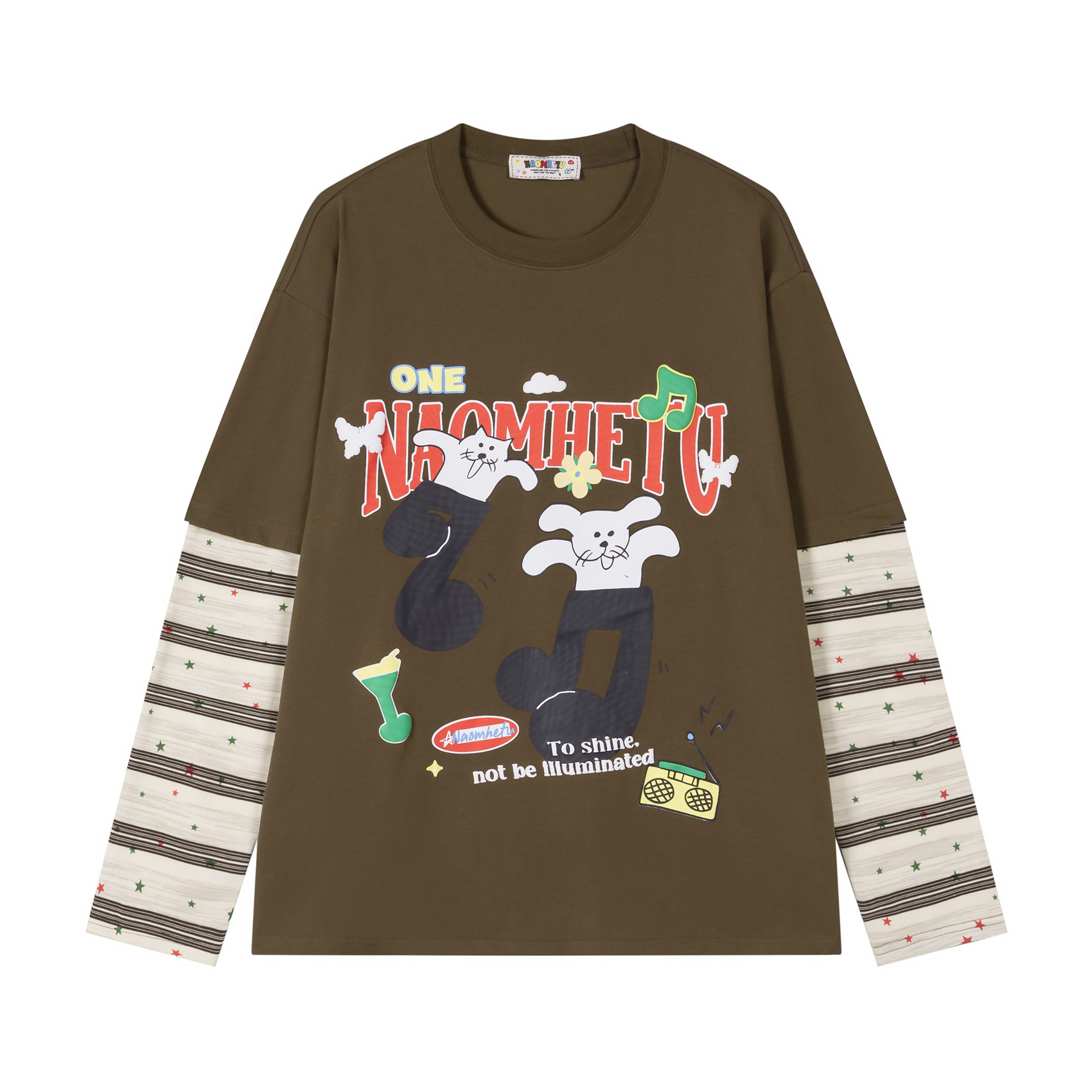 潮牌拼接发泡卡通印花长袖T恤男女秋季宽松休闲百搭假两件上衣