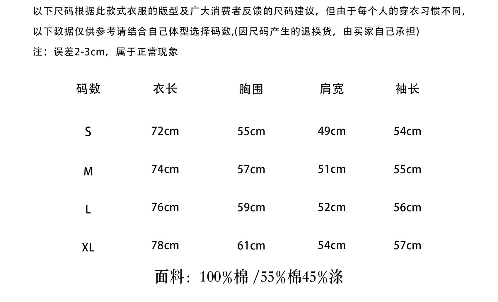 尺码 S,M,L,XL
