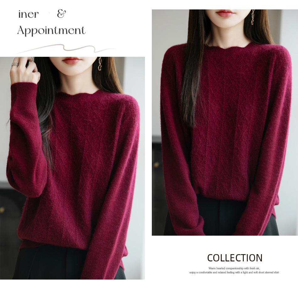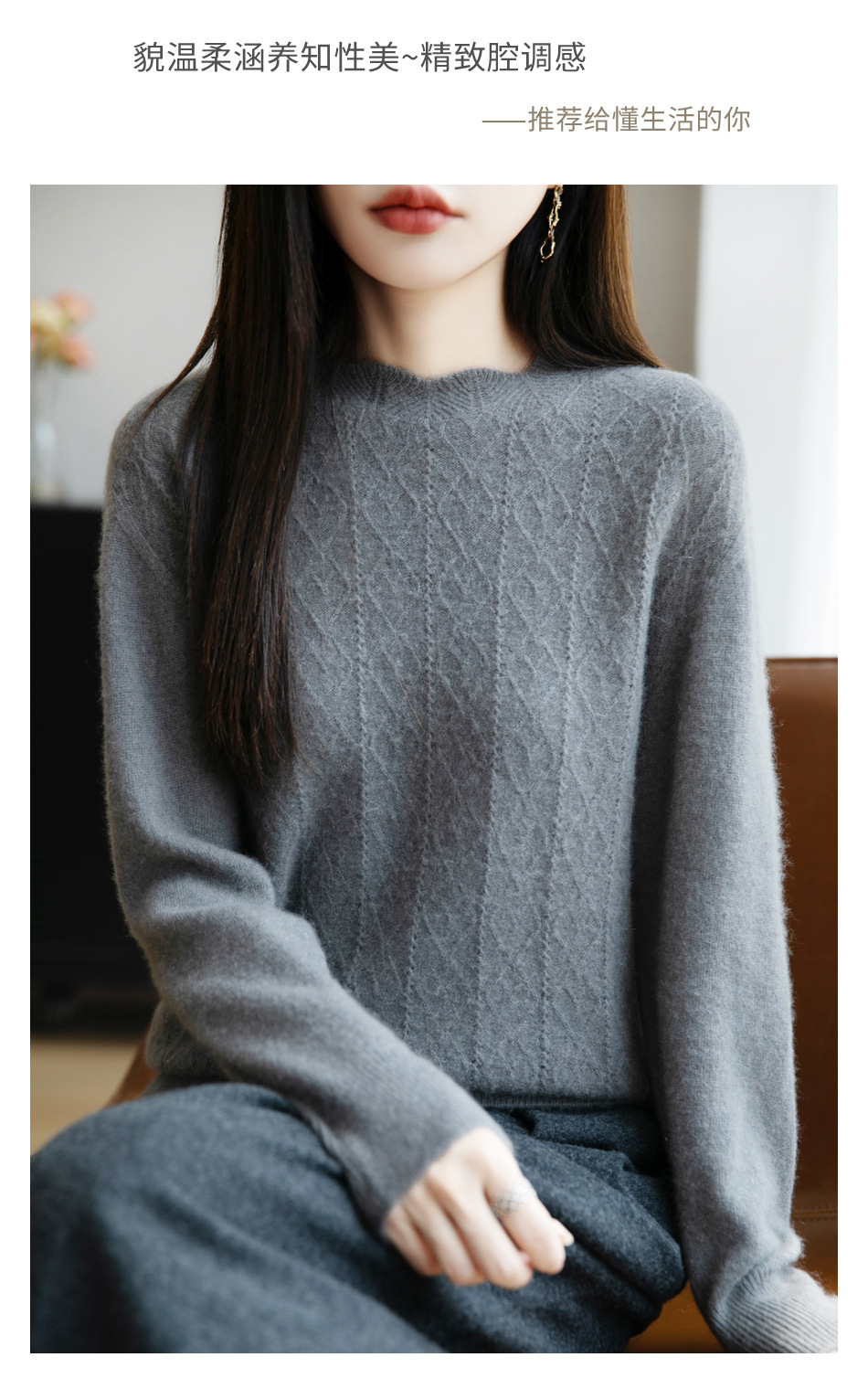 法式半高领印花精纺毛针织衫女2025新款宽松显瘦长袖保暖打底毛衣