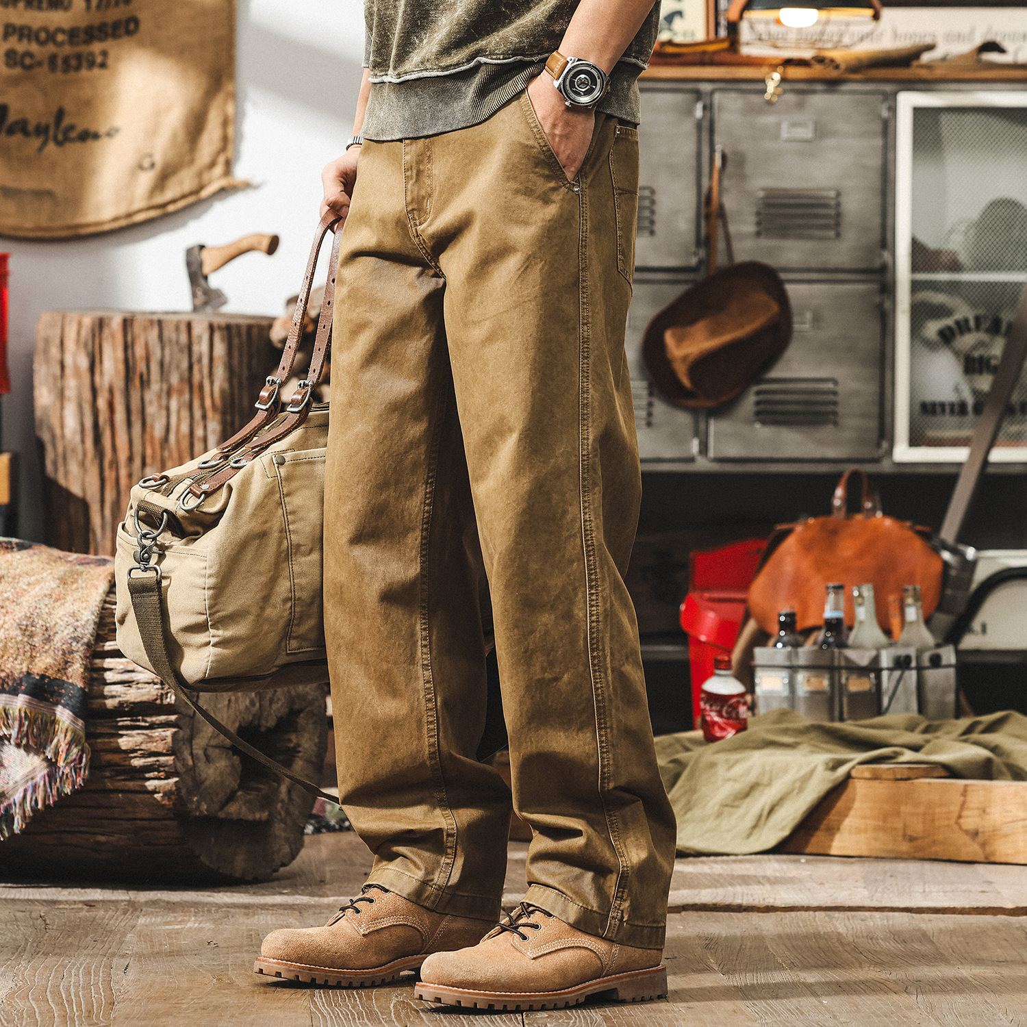 美式复古咖色工装裤子男宽松直筒男裤秋季2025新款潮牌男士休闲裤
