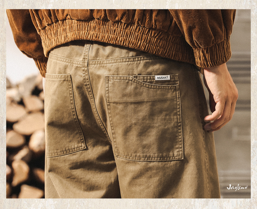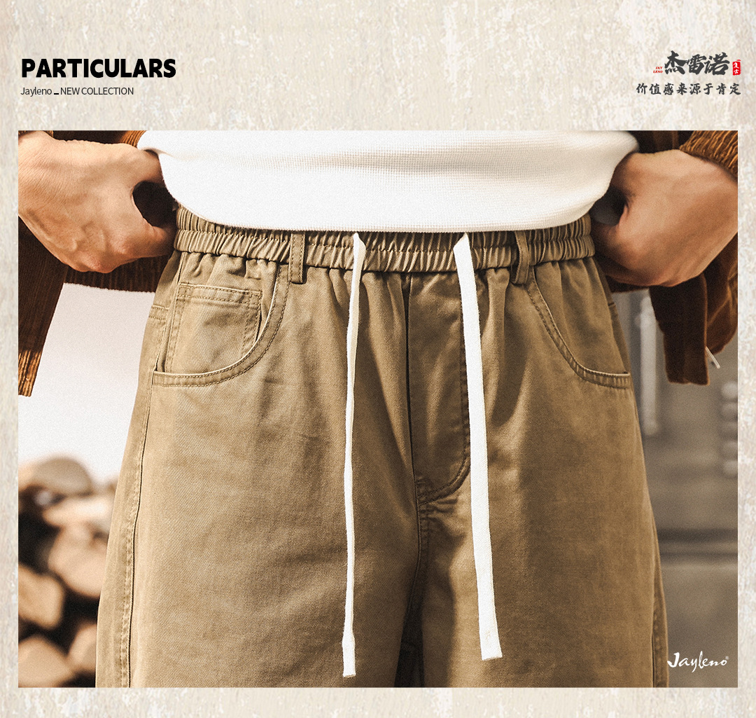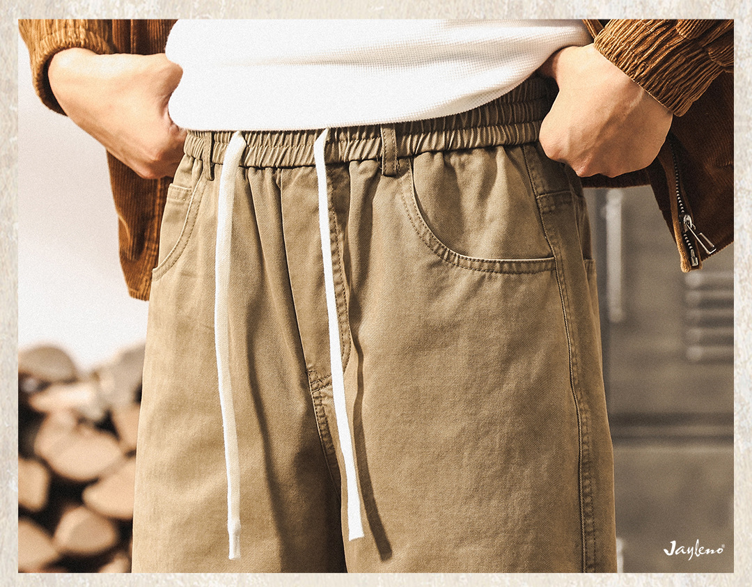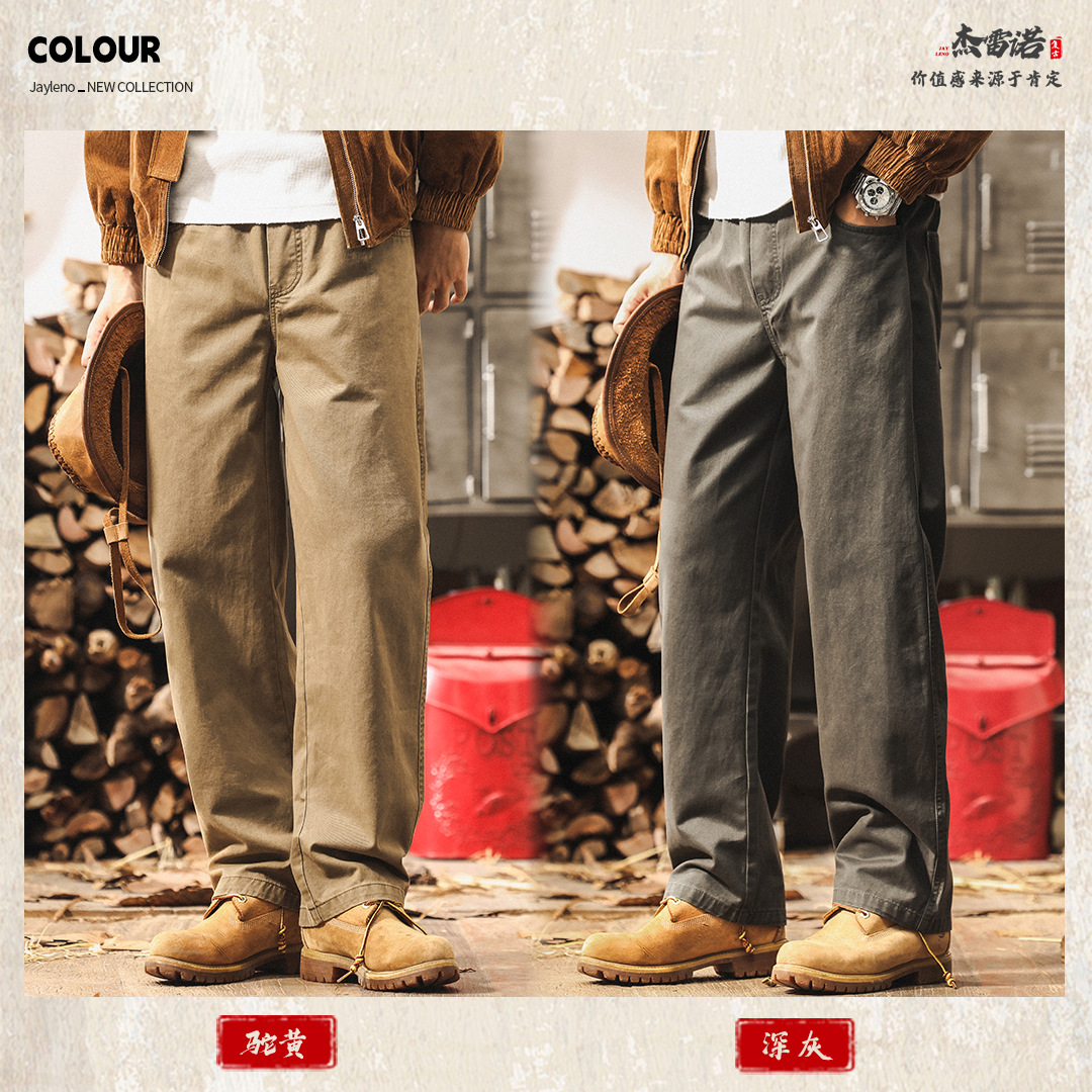 ジェレノのアメリカのレトロな重いポンドの工装のズボンの男性の秋のファッションのブランドの百合は洗ってゆったりしているストレートのカジュアルなズボンを炒めます。