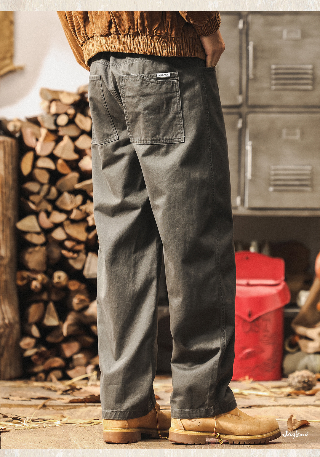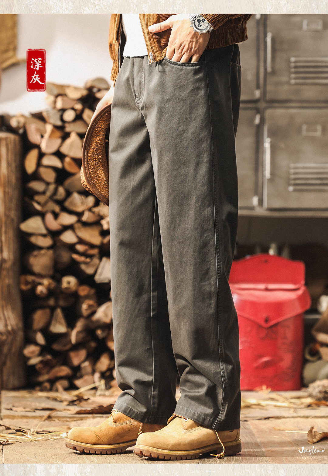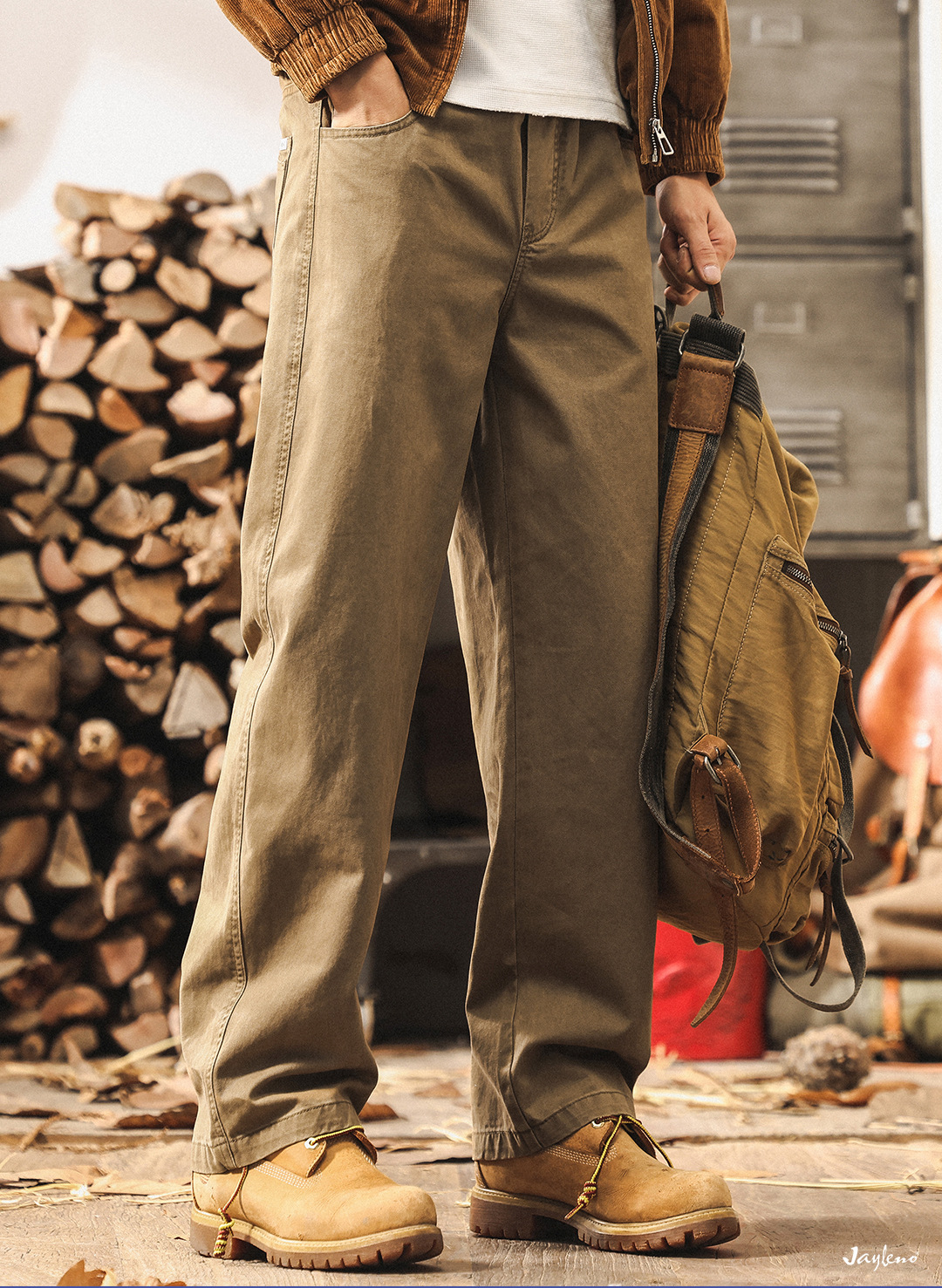 ジェレノのアメリカのレトロな重いポンドの工装のズボンの男性の秋のファッションのブランドの百合は洗ってゆったりしているストレートのカジュアルなズボンを炒めます。