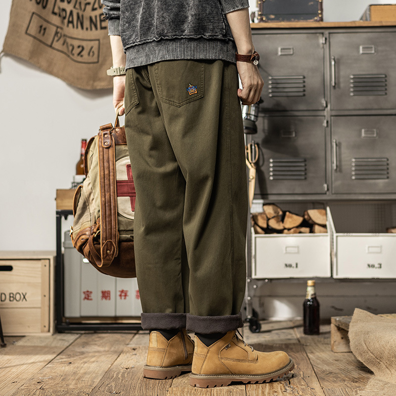 秋冬のベルベットのカジュアルパンツアメリカのレトロなストレートシンプルでゆるい綿の保温ズボン