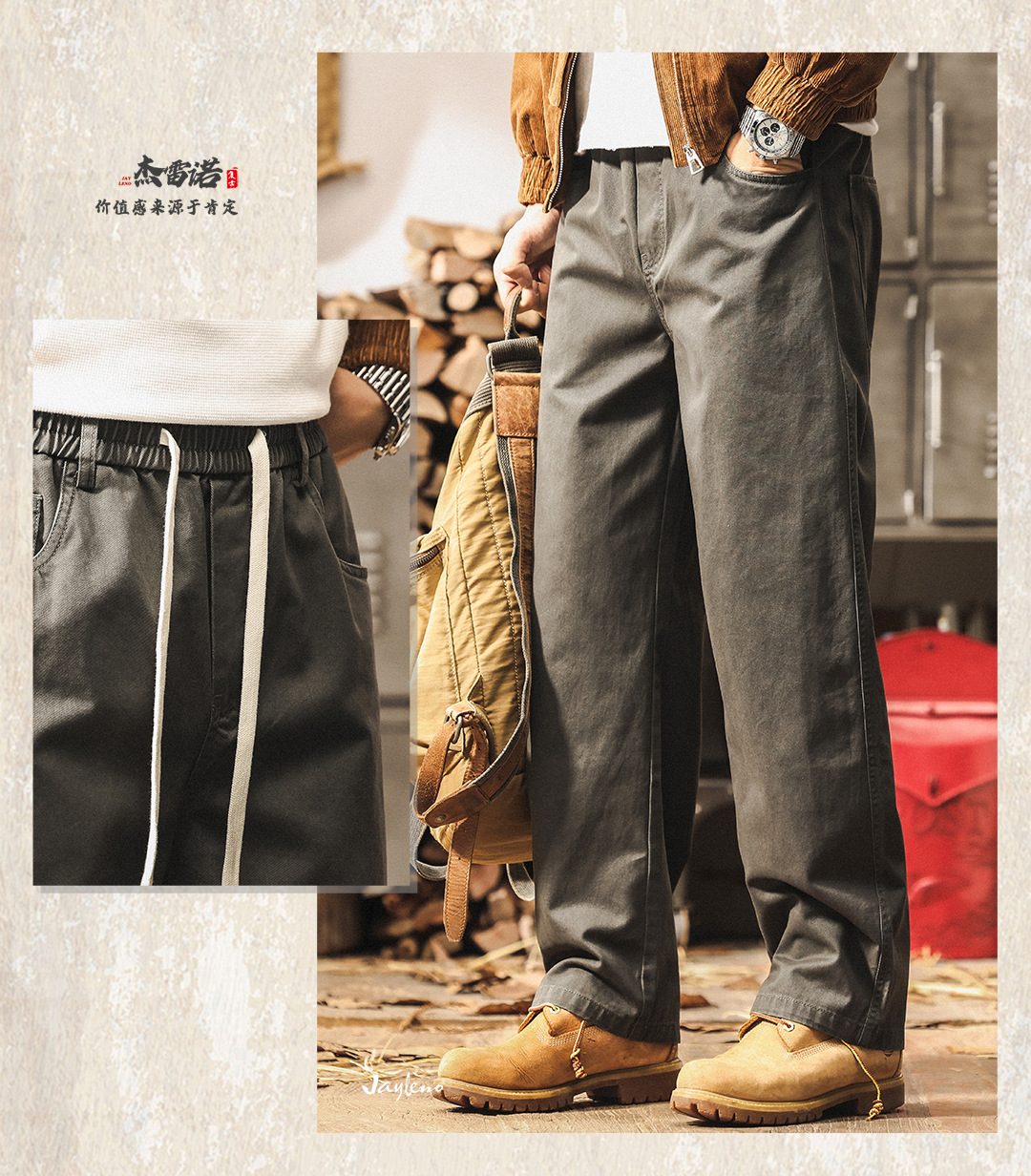 アメリカのレトロ300g重ポンド工装ズボン男性秋の潮牌炒め洗いゆるいストレートパンツ男性カジュアルパンツ