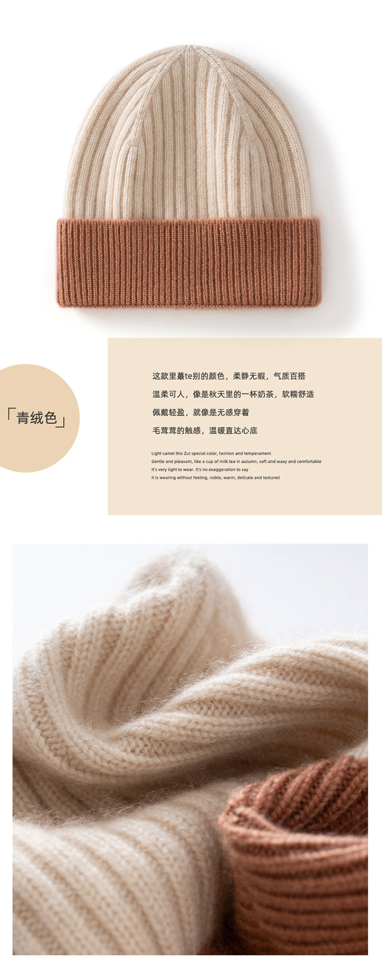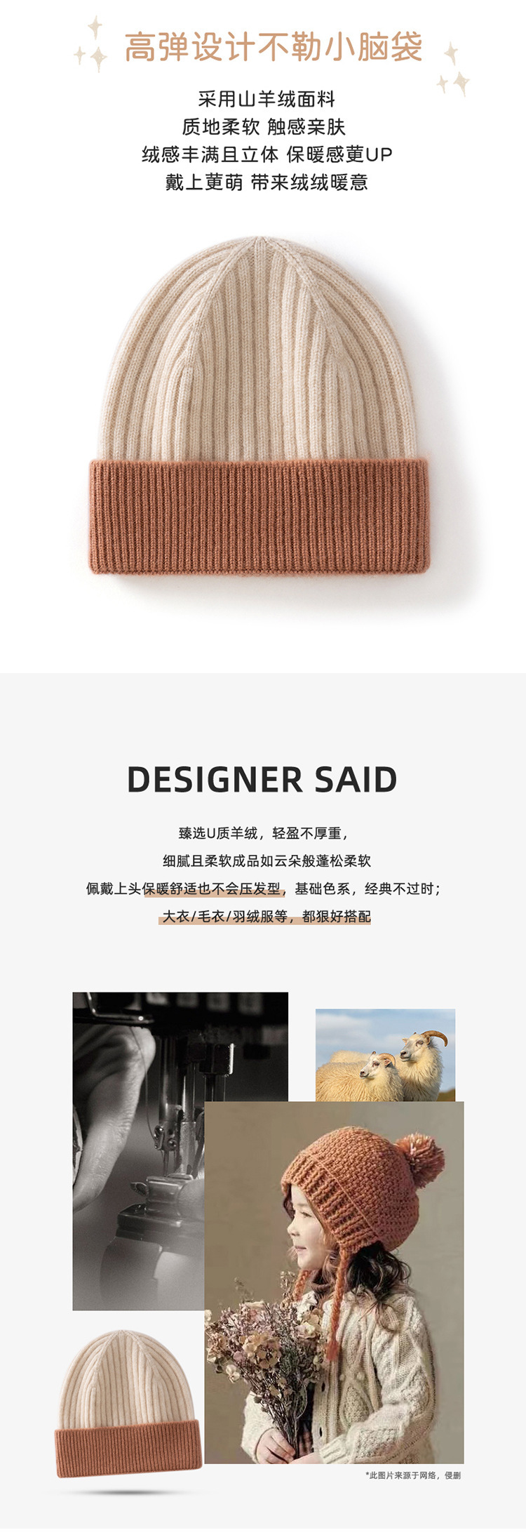 新款男女童拼色坑条羊绒针织帽秋冬保暖套头帽儿童堆堆帽户外冷帽