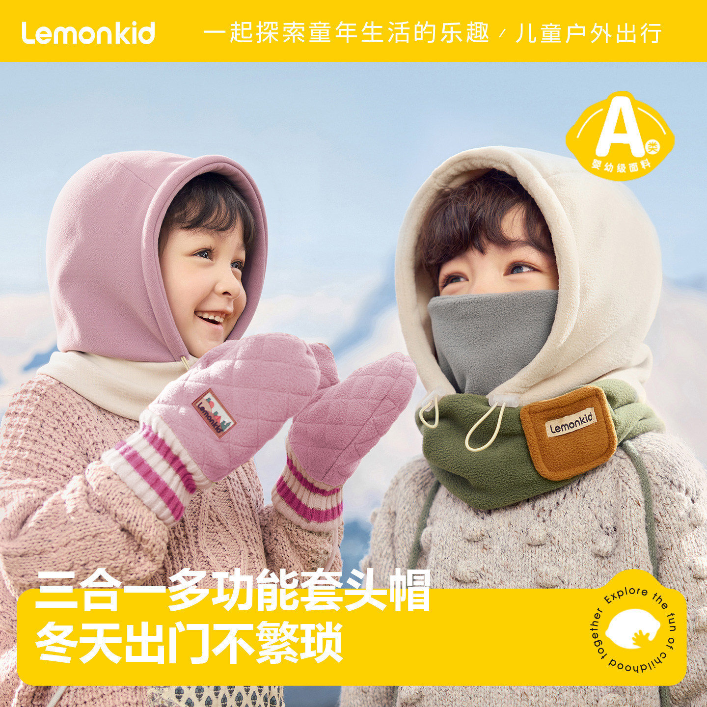 レモンベビー子供用冬帽子、手袋一体型、防風、男女兼用、A級帯電防止、ネックウォーマー付き帽子、卸売