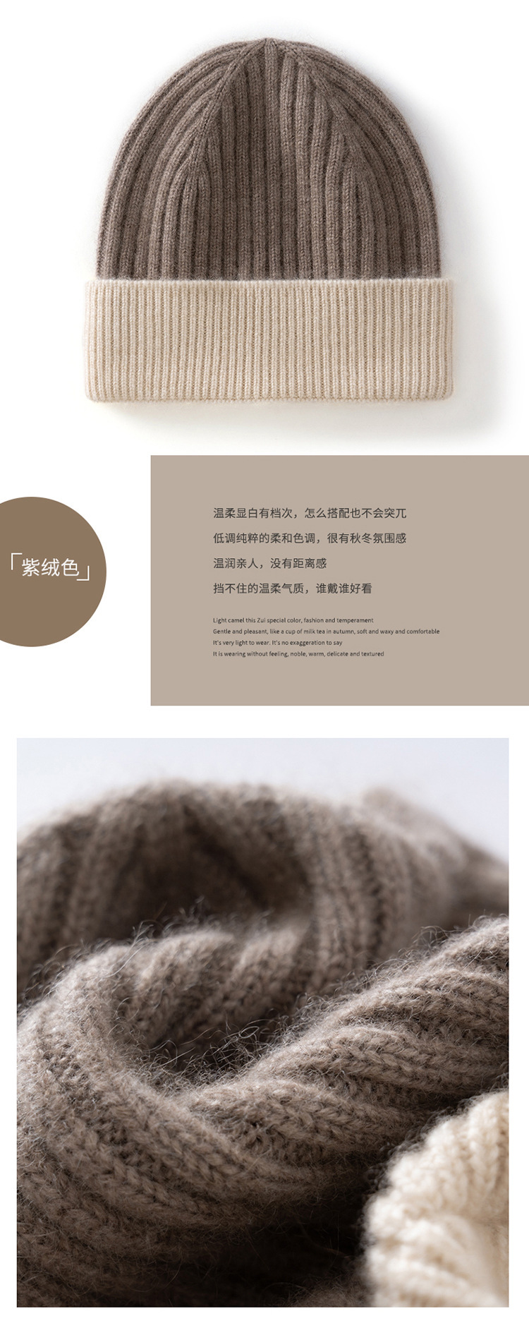 秋冬には100% のカシミヤの帽子を厚くして、女性の純粋なカシミヤの帽子のニットの帽子をかぶせます。