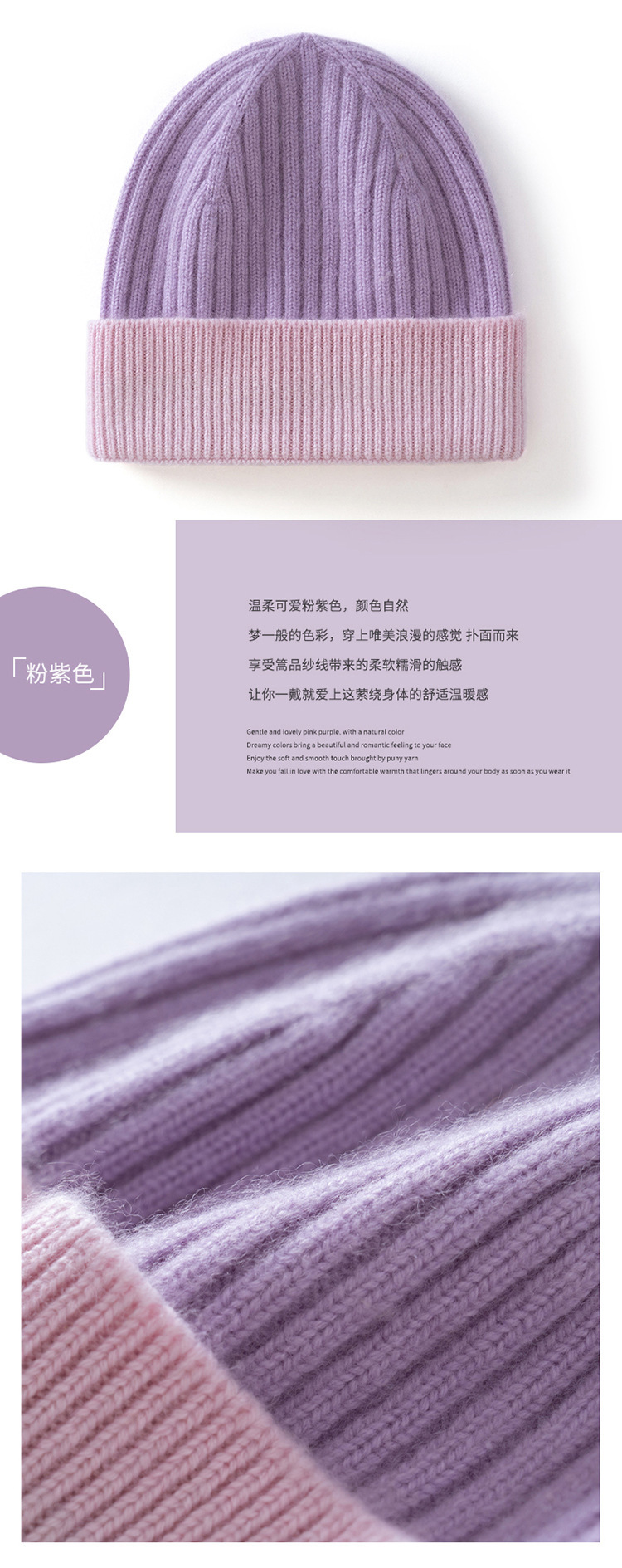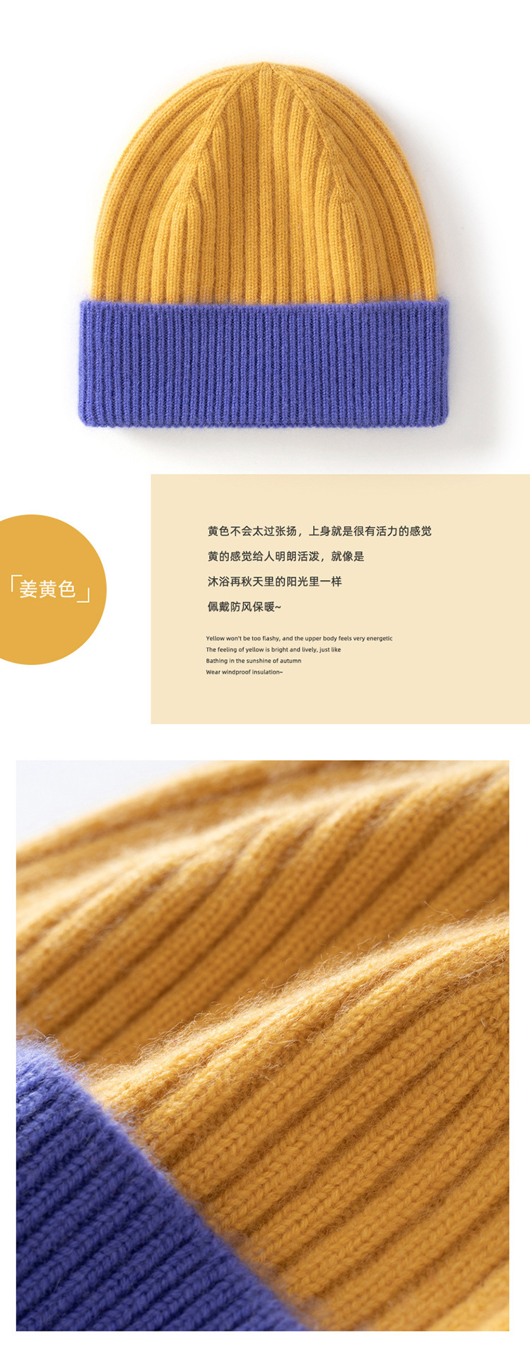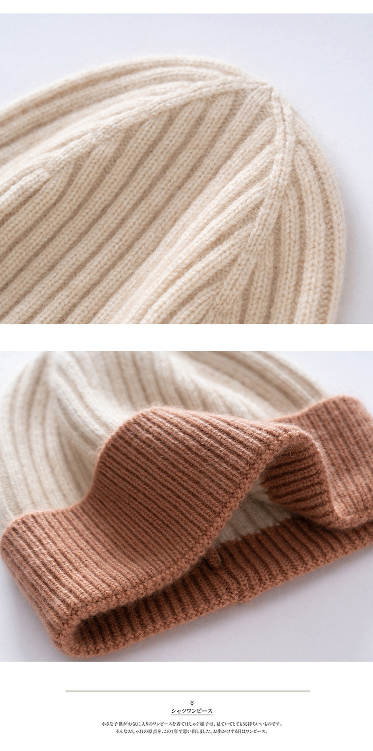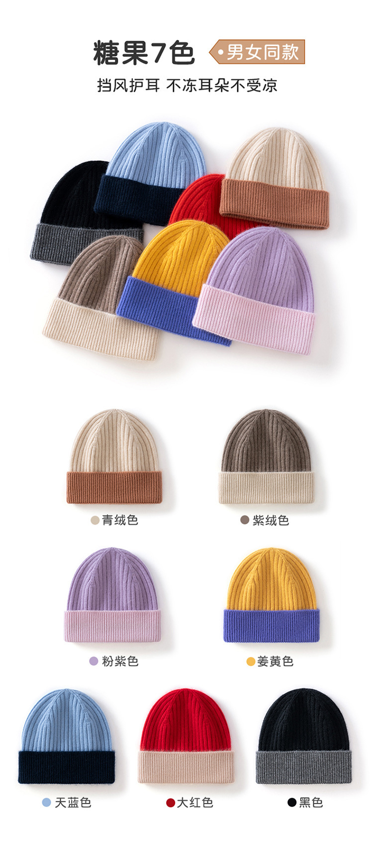 100% ピュアウールニットウール帽子、コントラストカラー、ファッショナブルでシンプルな暖かい帽子、男性と女性のための同じスタイルのドーム型秋冬防寒帽子
