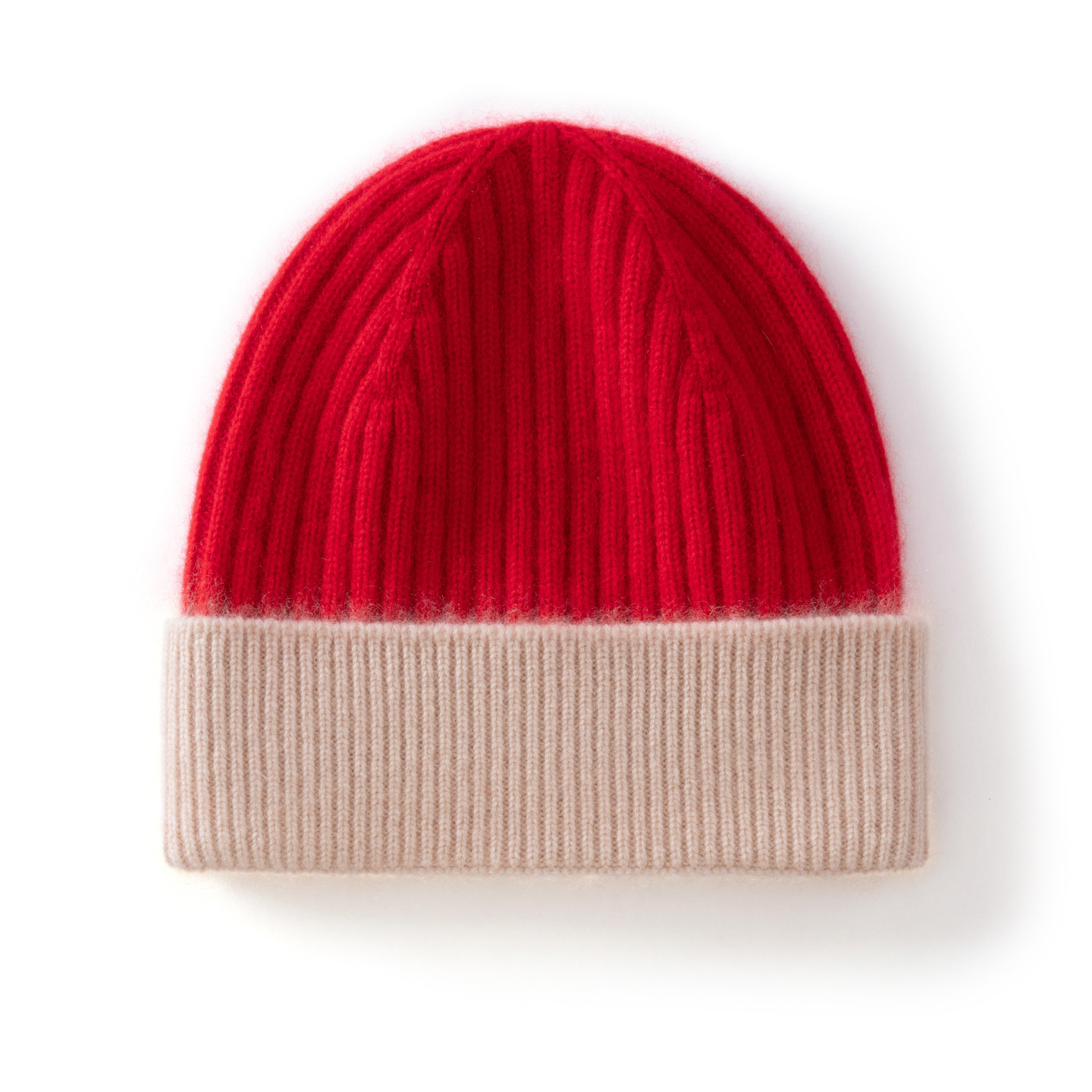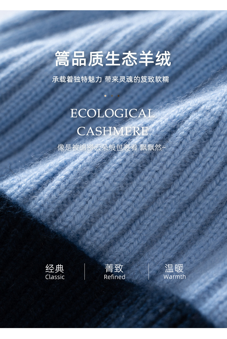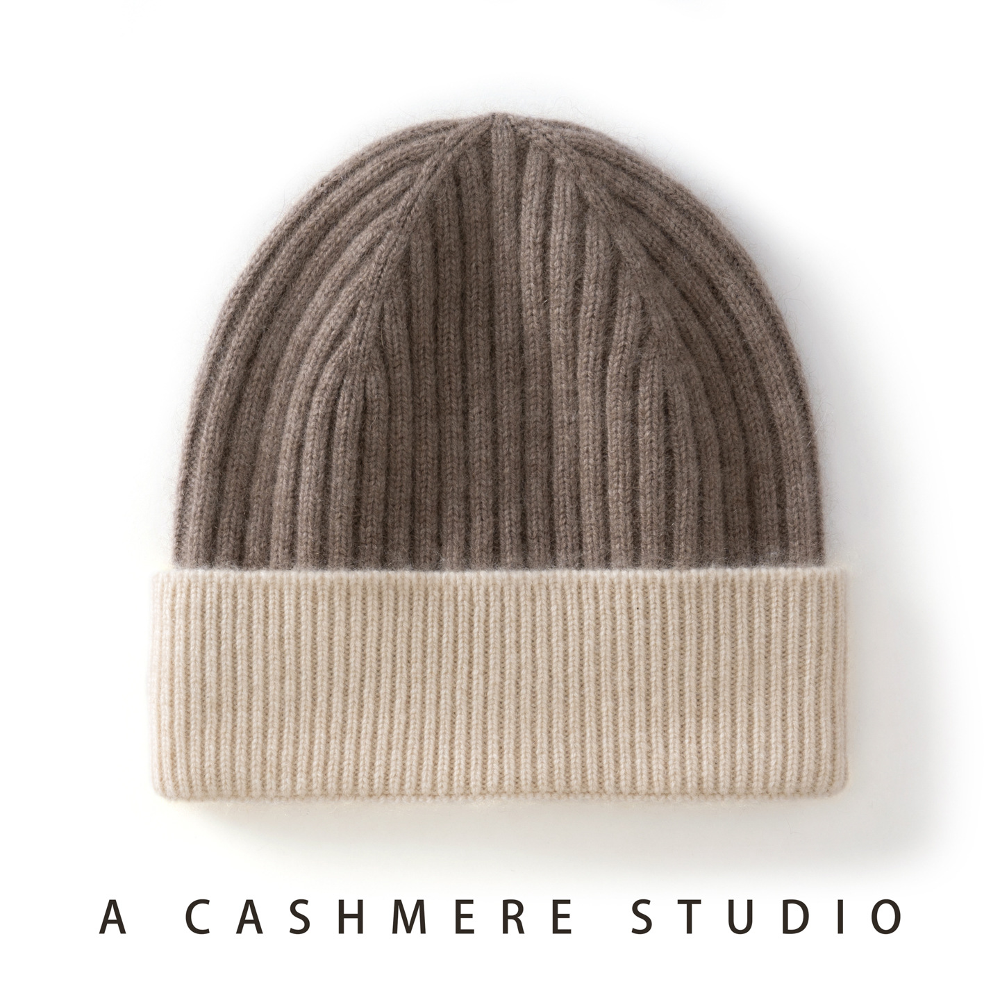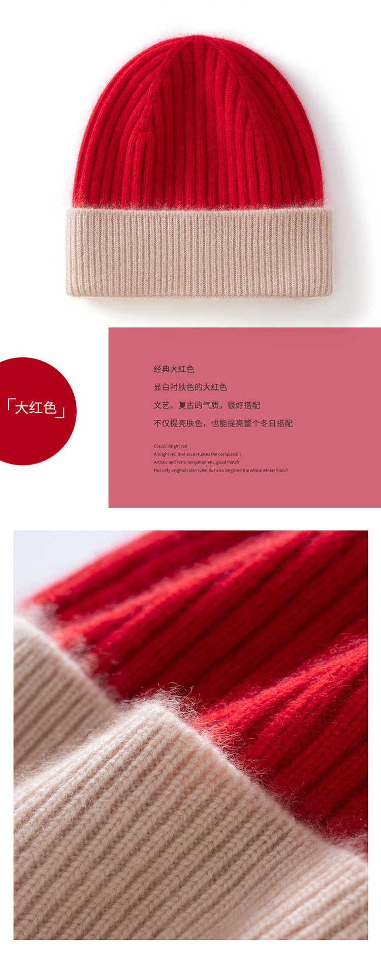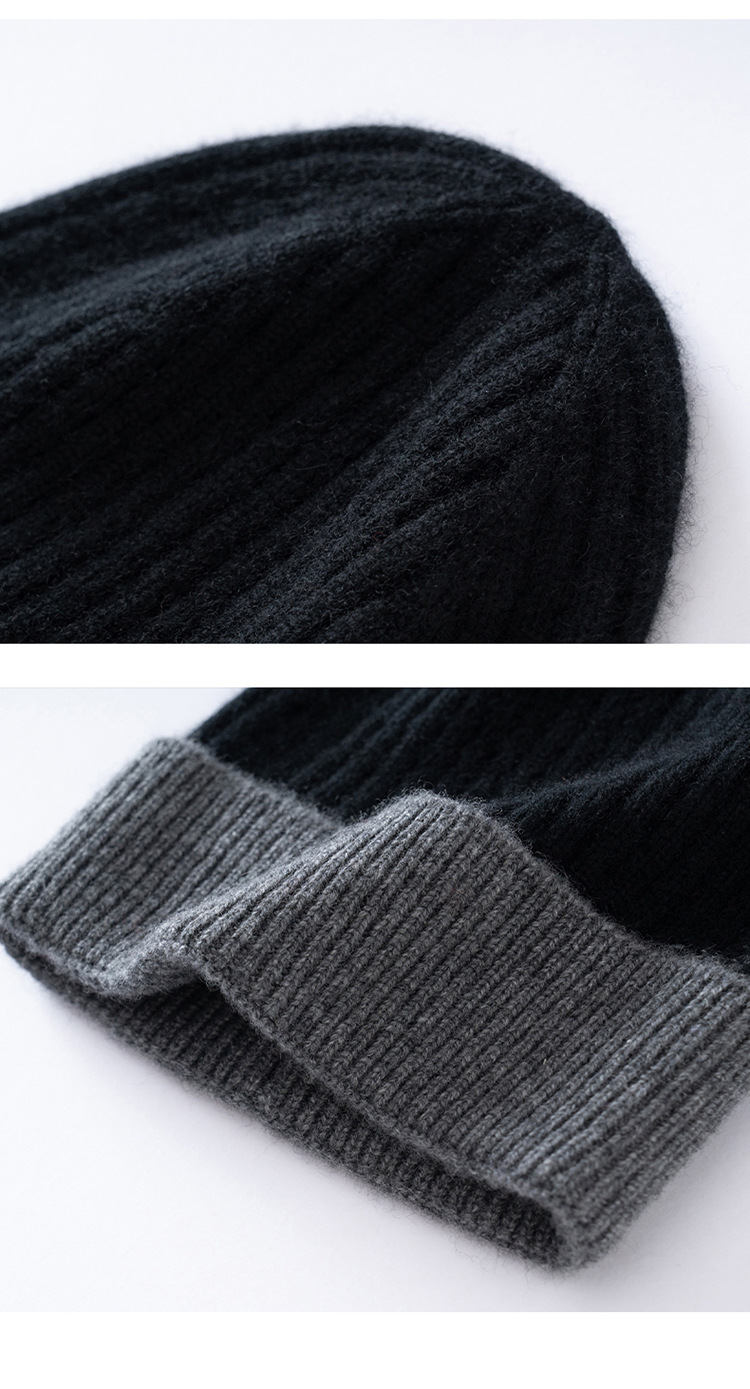 100% ピュアウールニットウール帽子、コントラストカラー、ファッショナブルでシンプルな暖かい帽子、男性と女性のための同じスタイルのドーム型秋冬防寒帽子