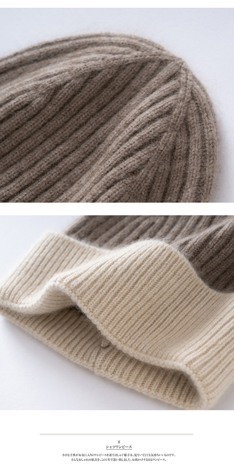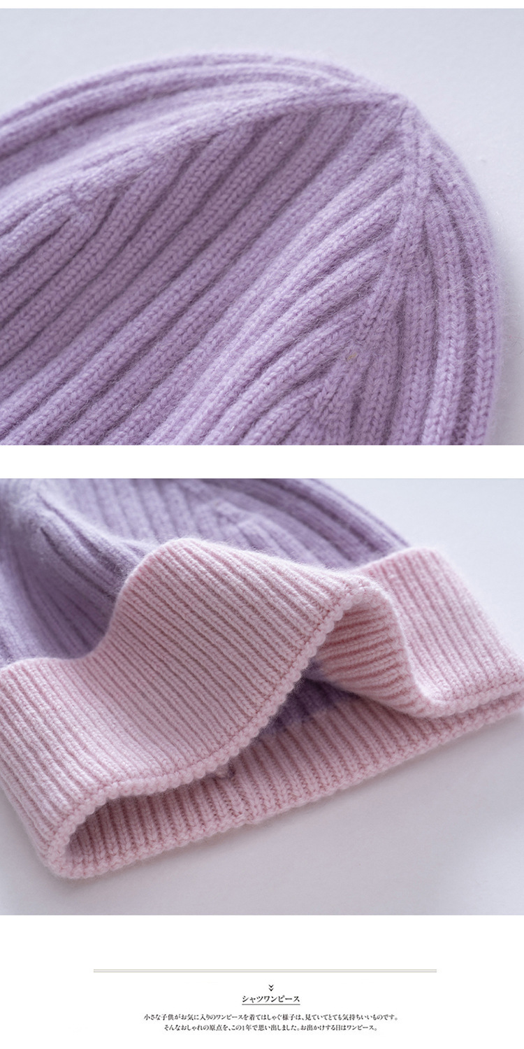 纯山羊绒坑条儿童针织帽跨境外贸秋冬透气套头帽亚马逊时尚堆堆帽