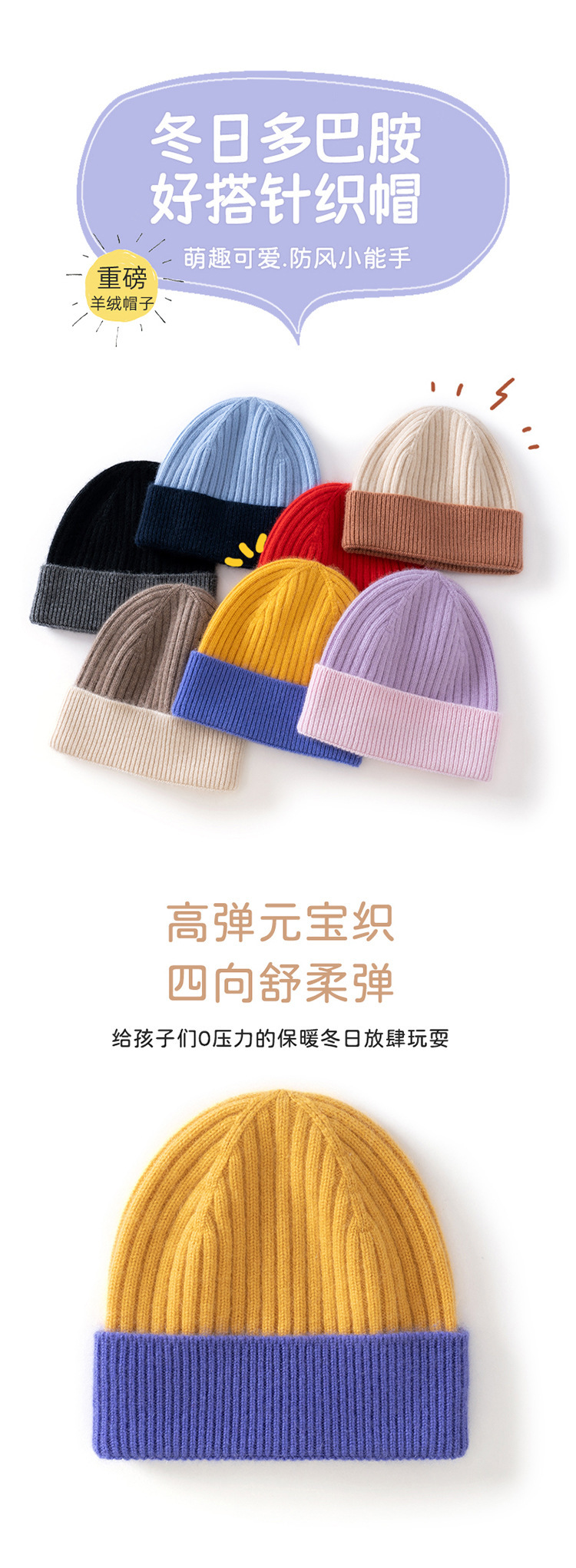 山羊绒儿童帽秋冬儿童帽可爱翻边针织包头帽男女宝宝帽子套头冷帽