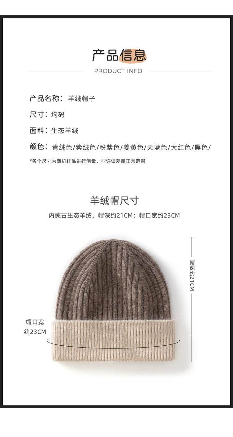 双层加厚山羊绒帽子男女针织帽堆堆帽保暖护耳帽跨境包头情侣冷帽