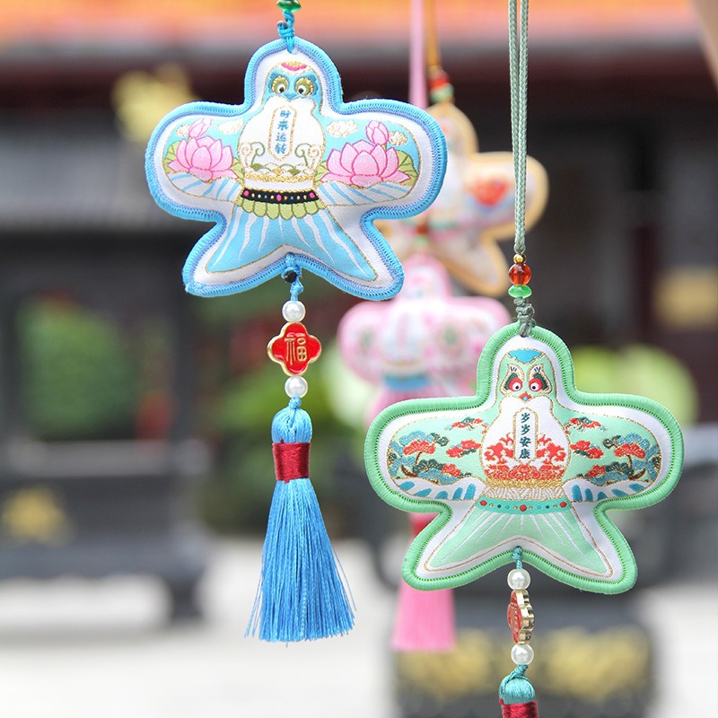 景勝地寺院の文化的で創造的な用品、香袋、車のペンダント、両面刺繍クリエイティブペンダント、景勝地の文化的で創造的なギフト