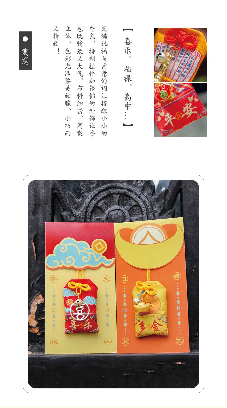 新年景区文创祈福别针福袋香包香囊三角手缝香包护身符平安符随身