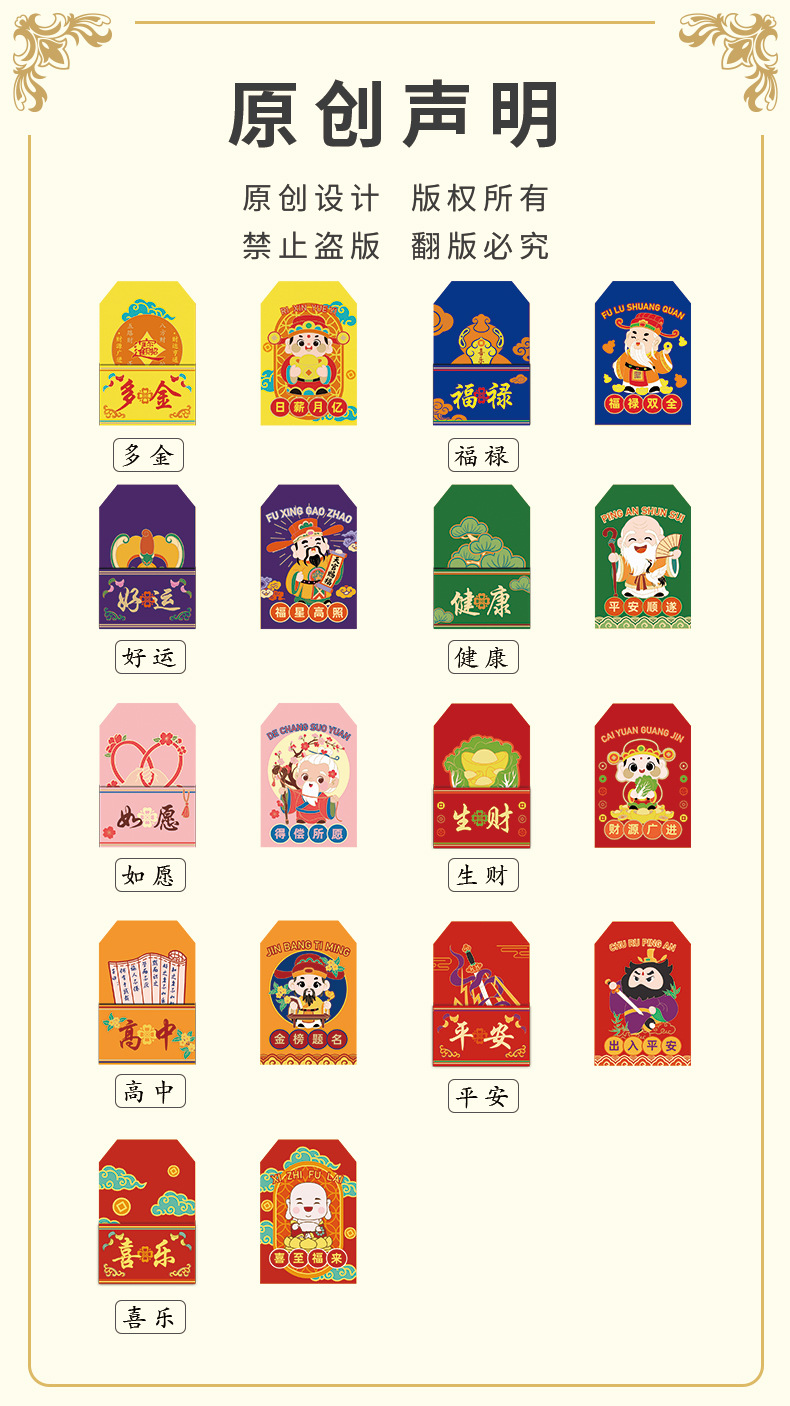 颜色 健康-绿,好运-紫,福禄-蓝,平安-红,高中-黄,生财-红,如愿-粉,喜乐-红,多金-黄