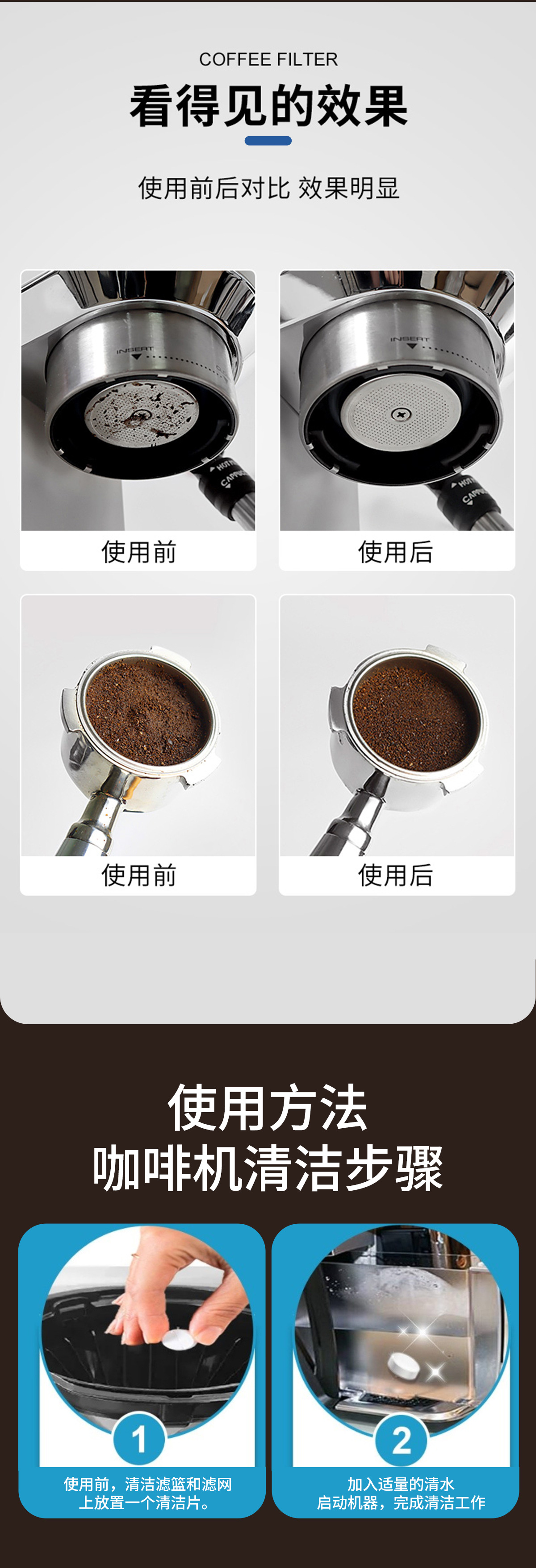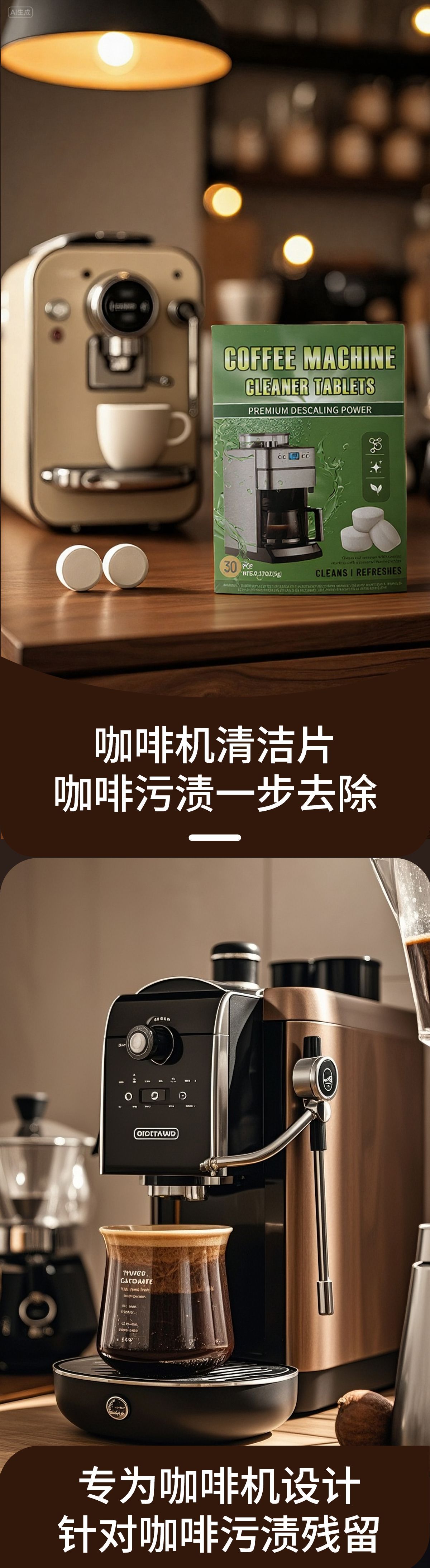 跨境裸粒浓缩咖啡机清洁片清洁块去除咖啡渍多效合一清洁剂除垢泡