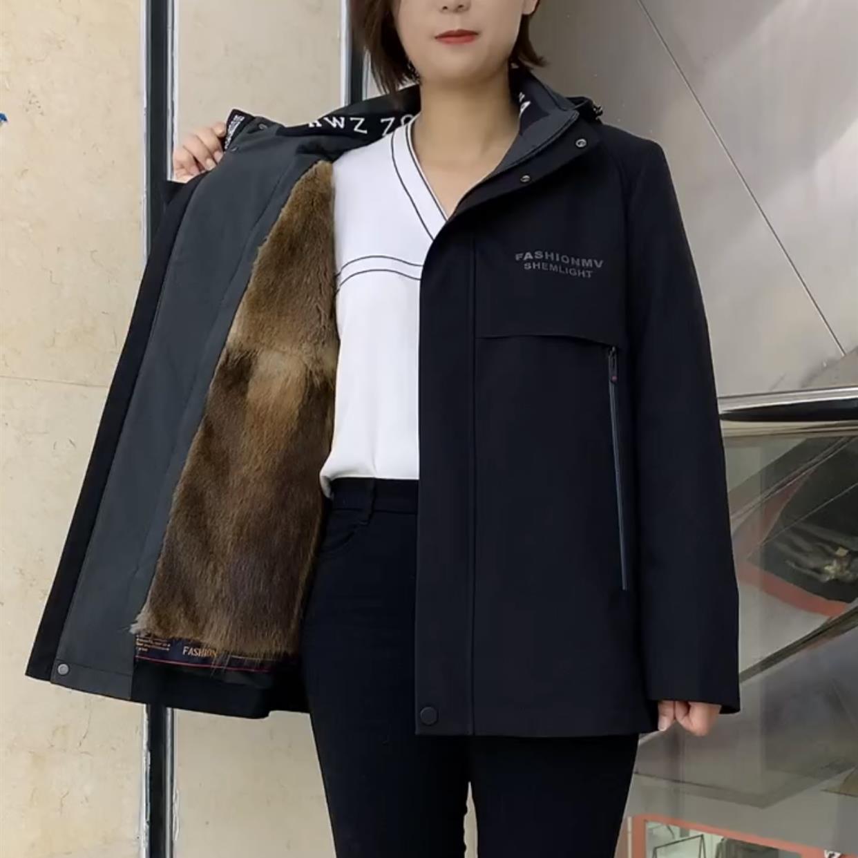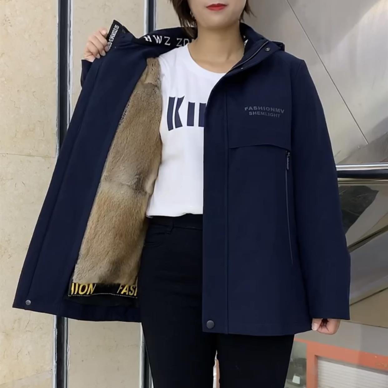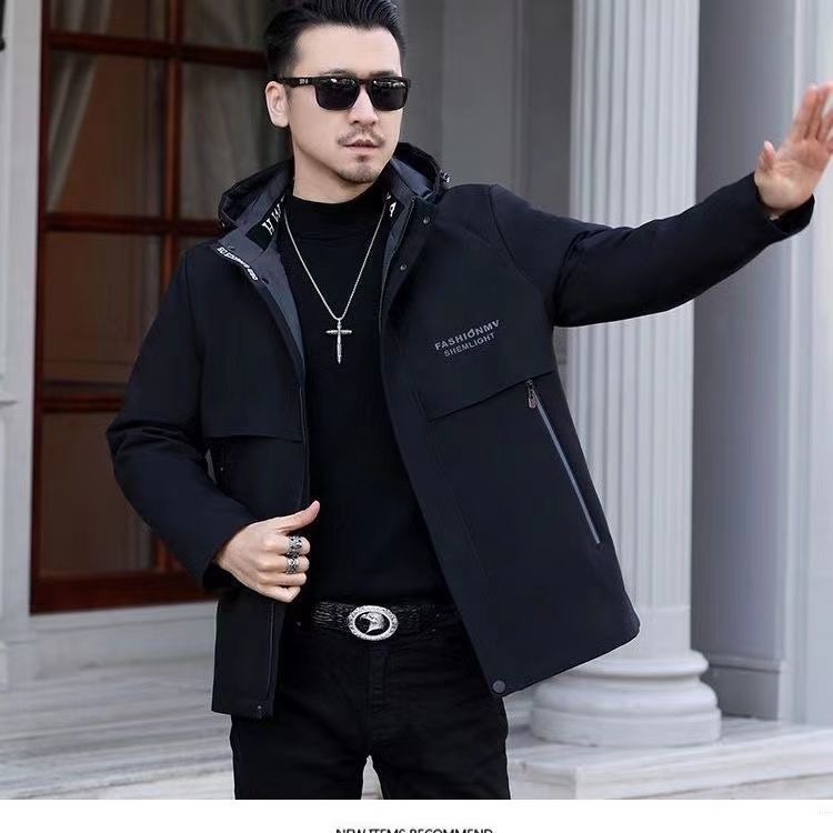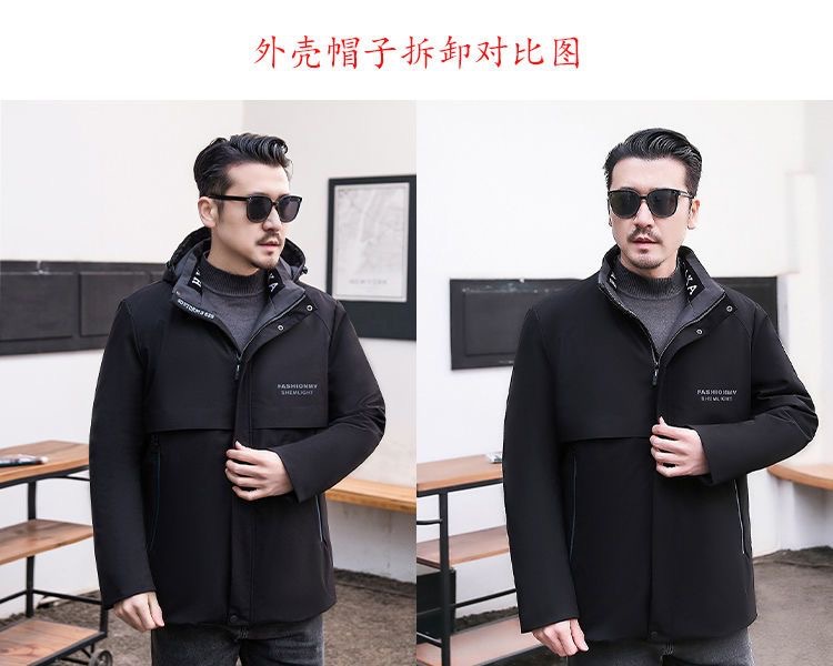 真毛皮派克服兔毛内胆可拆卸男款商务衣服连帽外套外套冬加厚