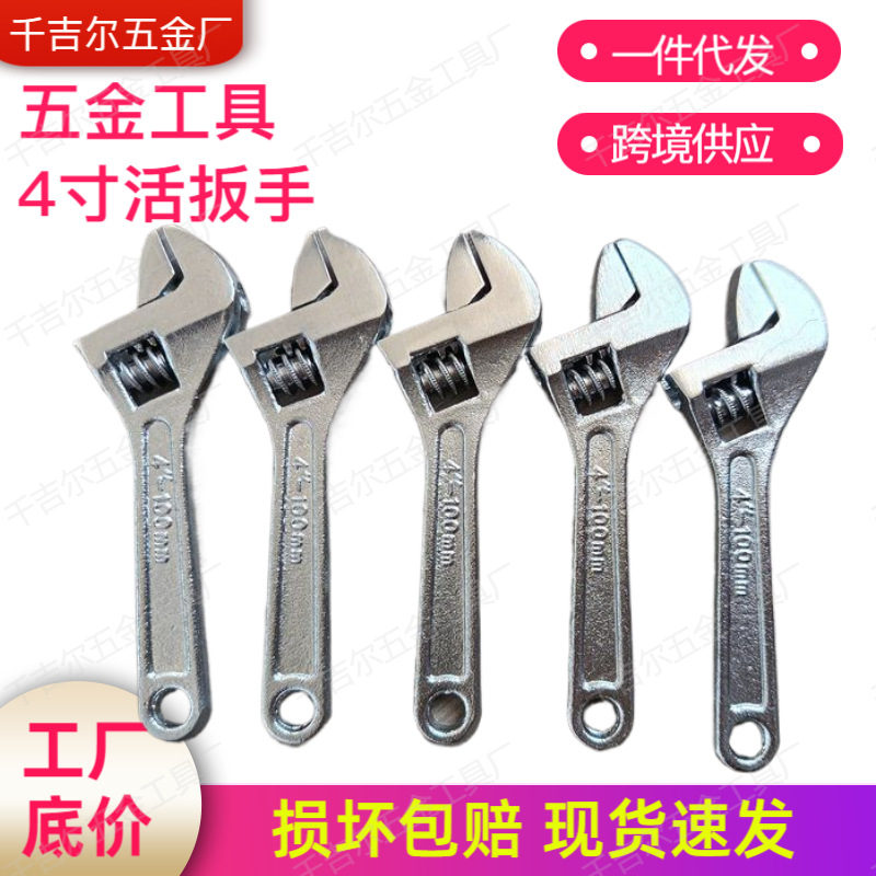 4インチ100mm活口レンチ、可動式レンチ、中性金物工具、ミニ精密ステンレス厚型