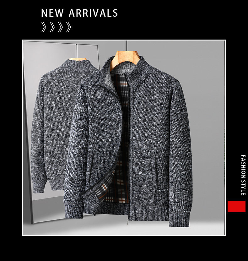 外贸专供男士立领毛衣开衫冬季新款加绒加厚外穿针织衫外套批发男