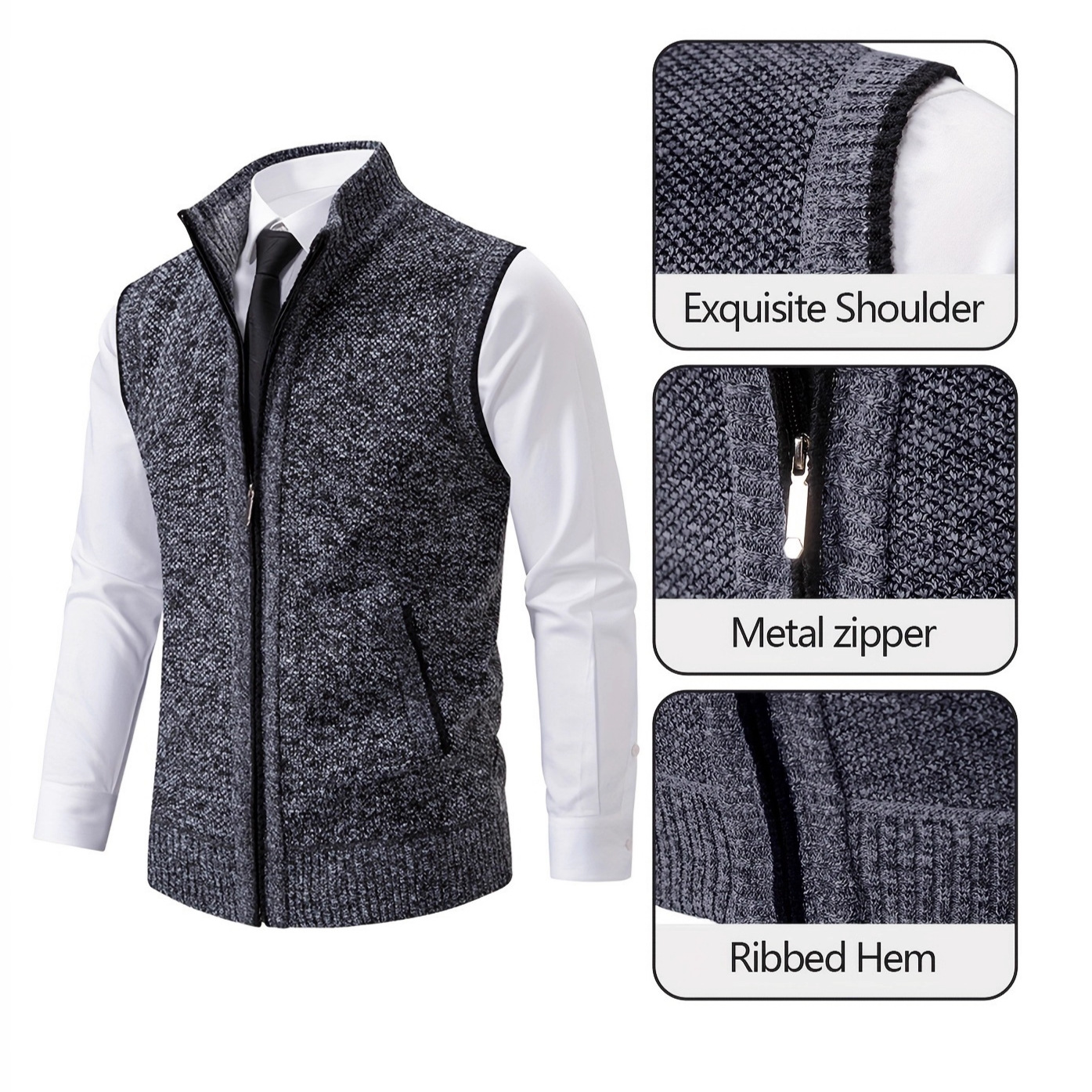 亚马逊专供秋冬季男士毛衣休闲无袖加绒加厚针织衫开衫马甲批发男