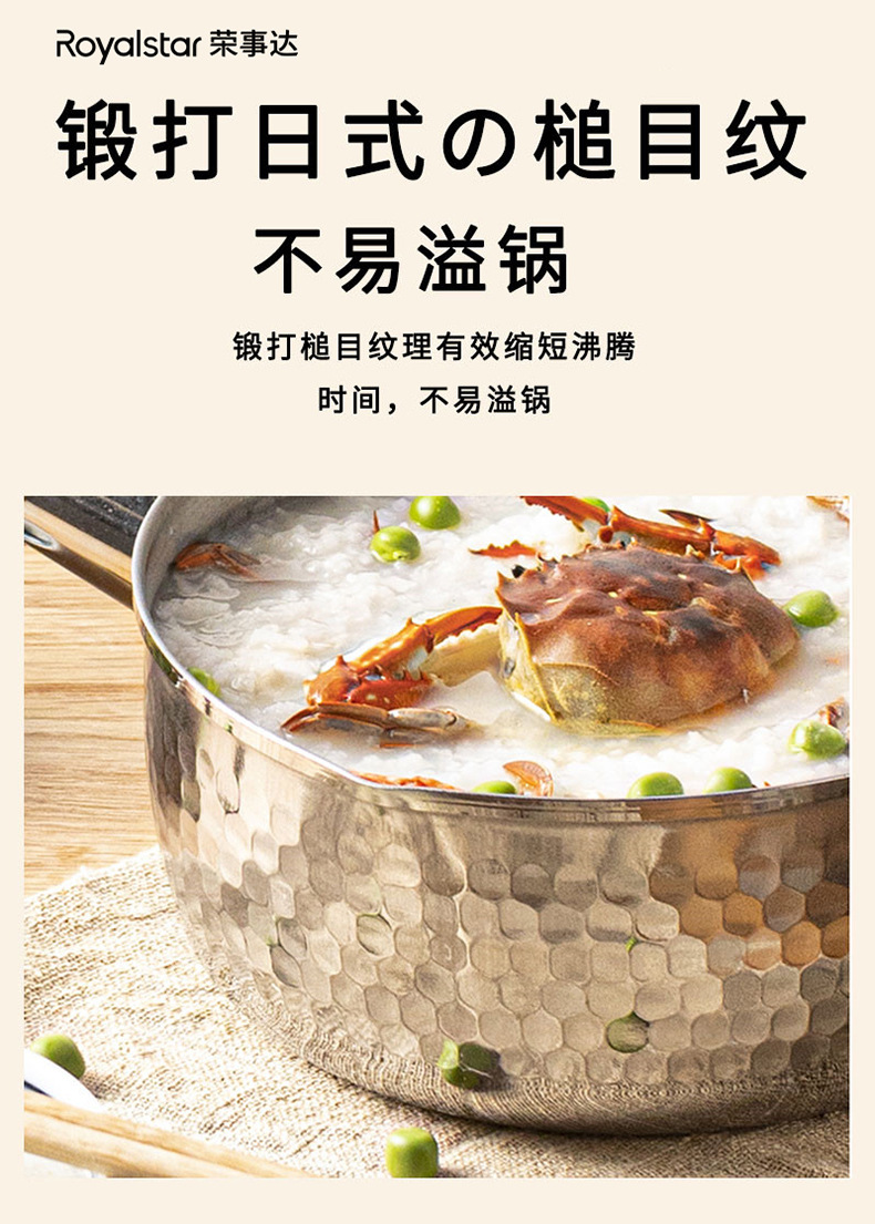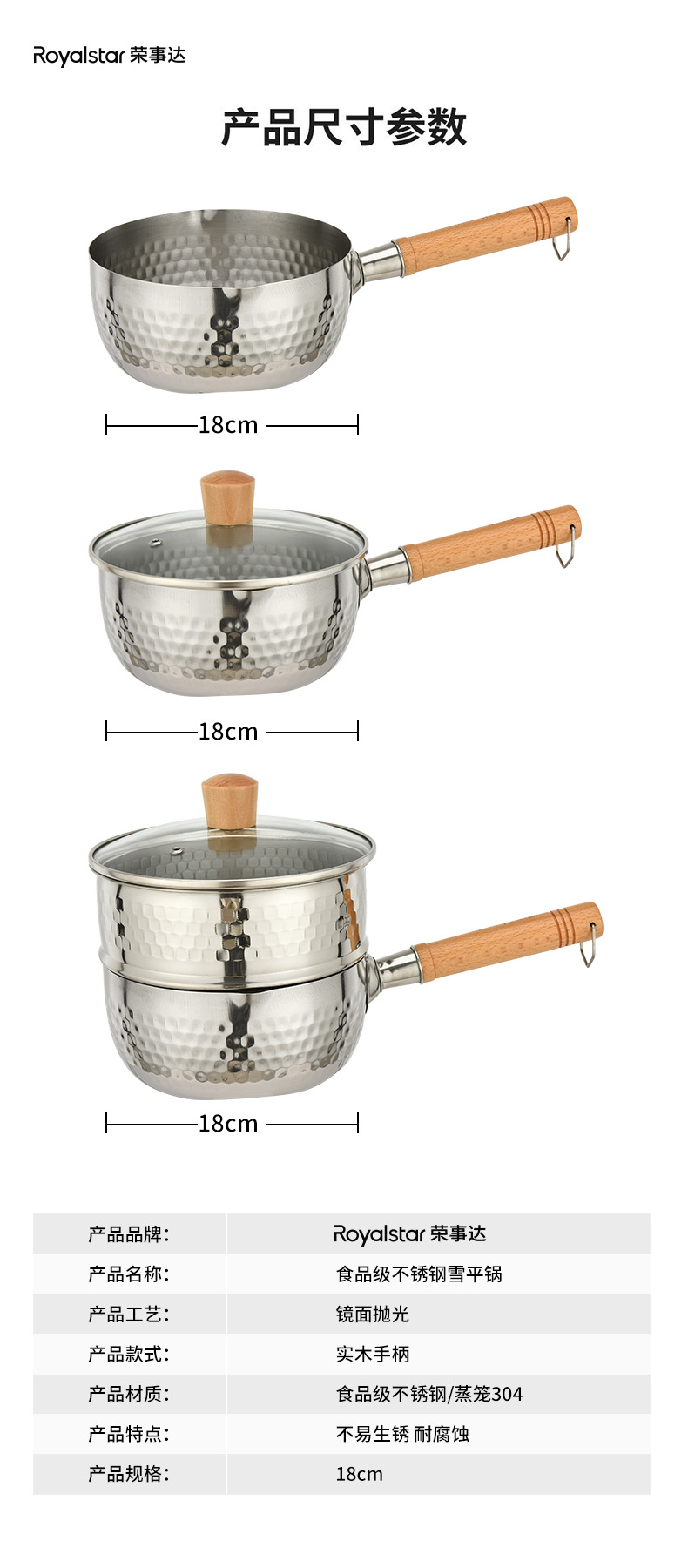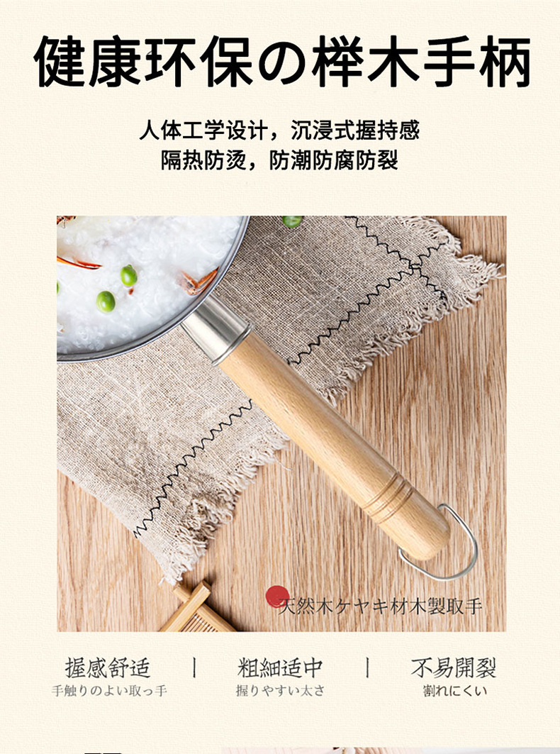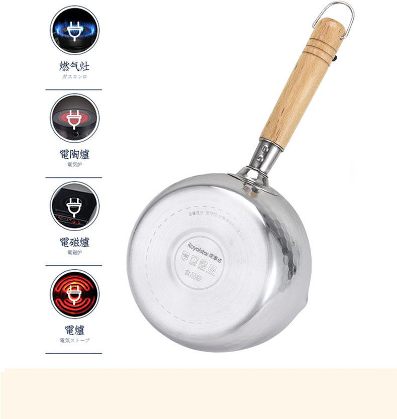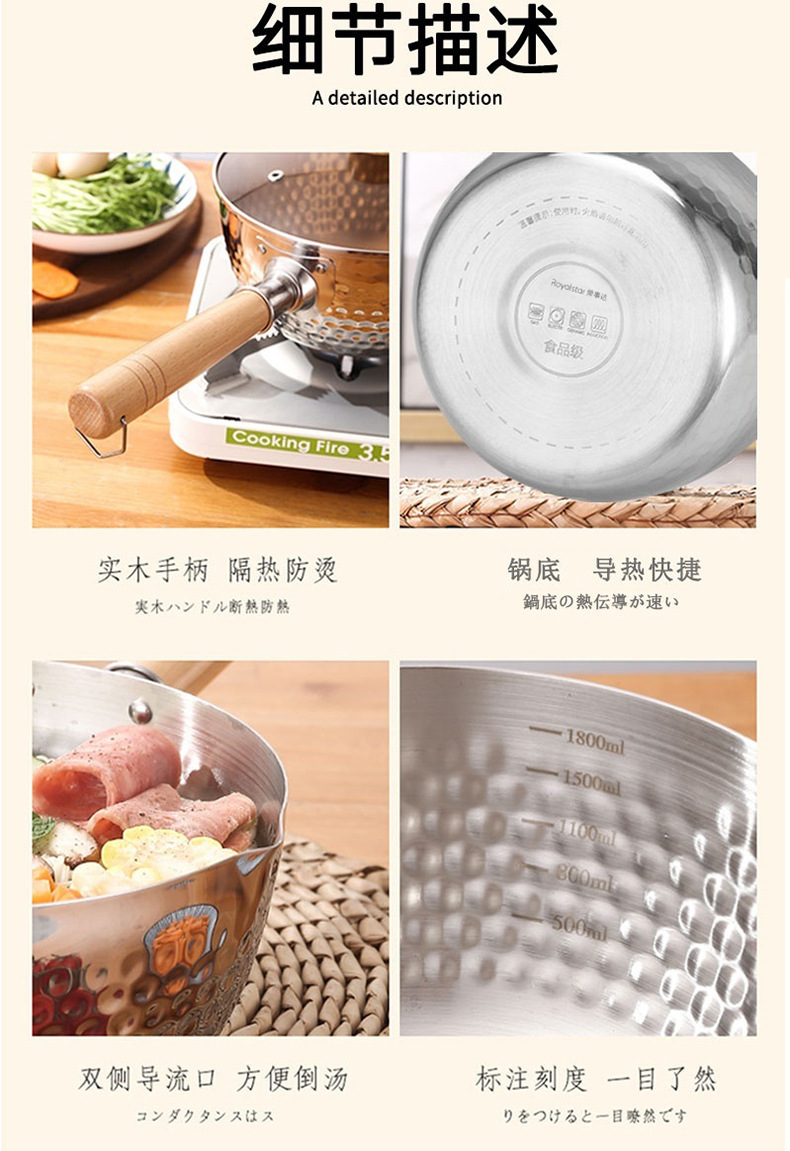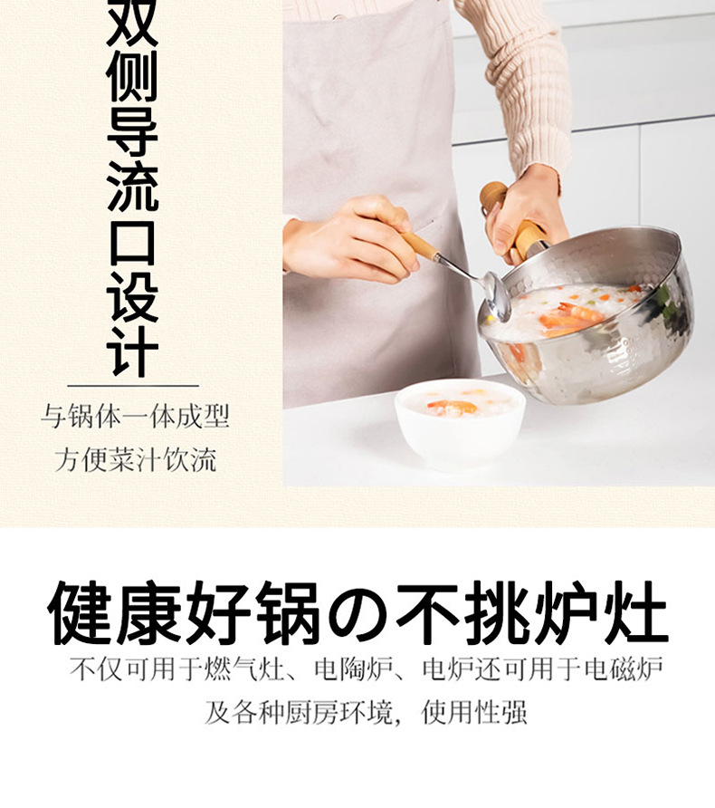 雪平锅日式锤纹不锈钢加厚木柄小奶锅不粘锅面条辅食锅无涂层