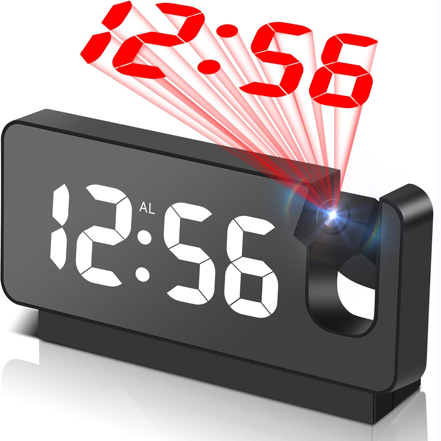 Amazonで人気のプロジェクション目覚まし時計、デスクトップ静音LED時計、自動光感知電子時計、プロジェクション時計