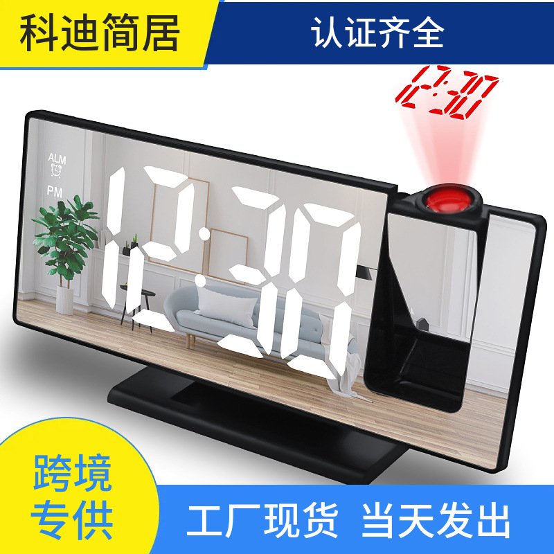 新型鏡面投影目覚まし時計の大画面表示静音寝坊電子時計多機能知能デジタル夜光台時計