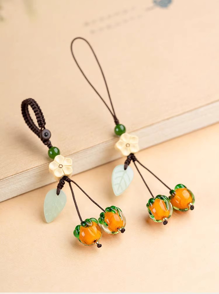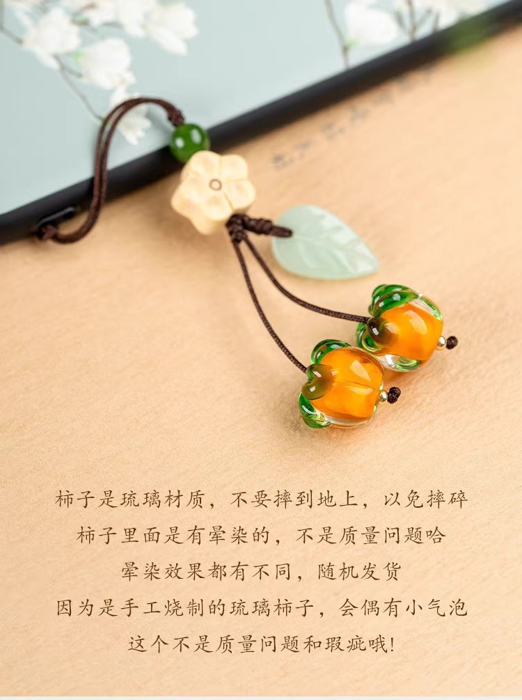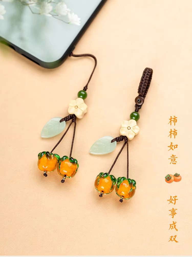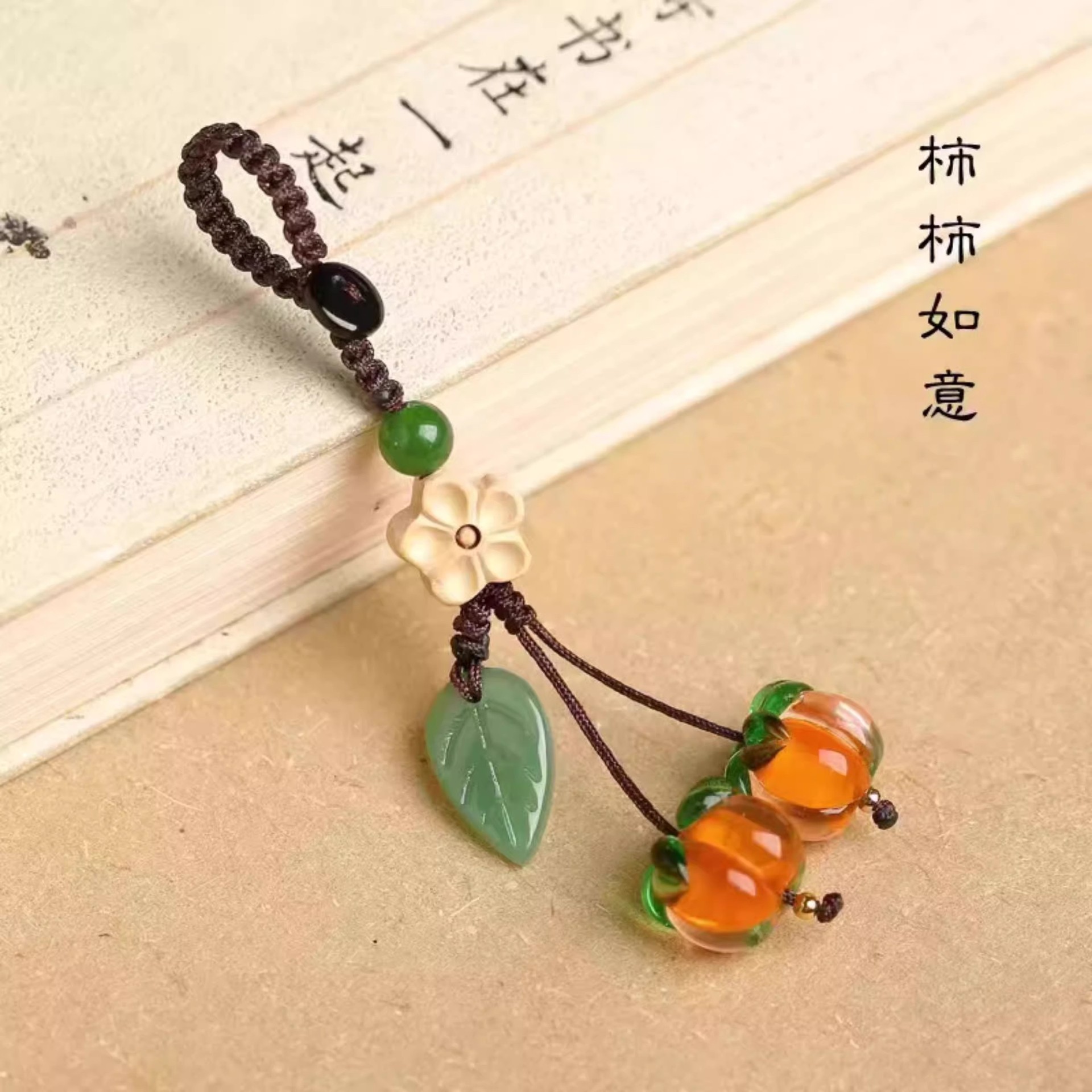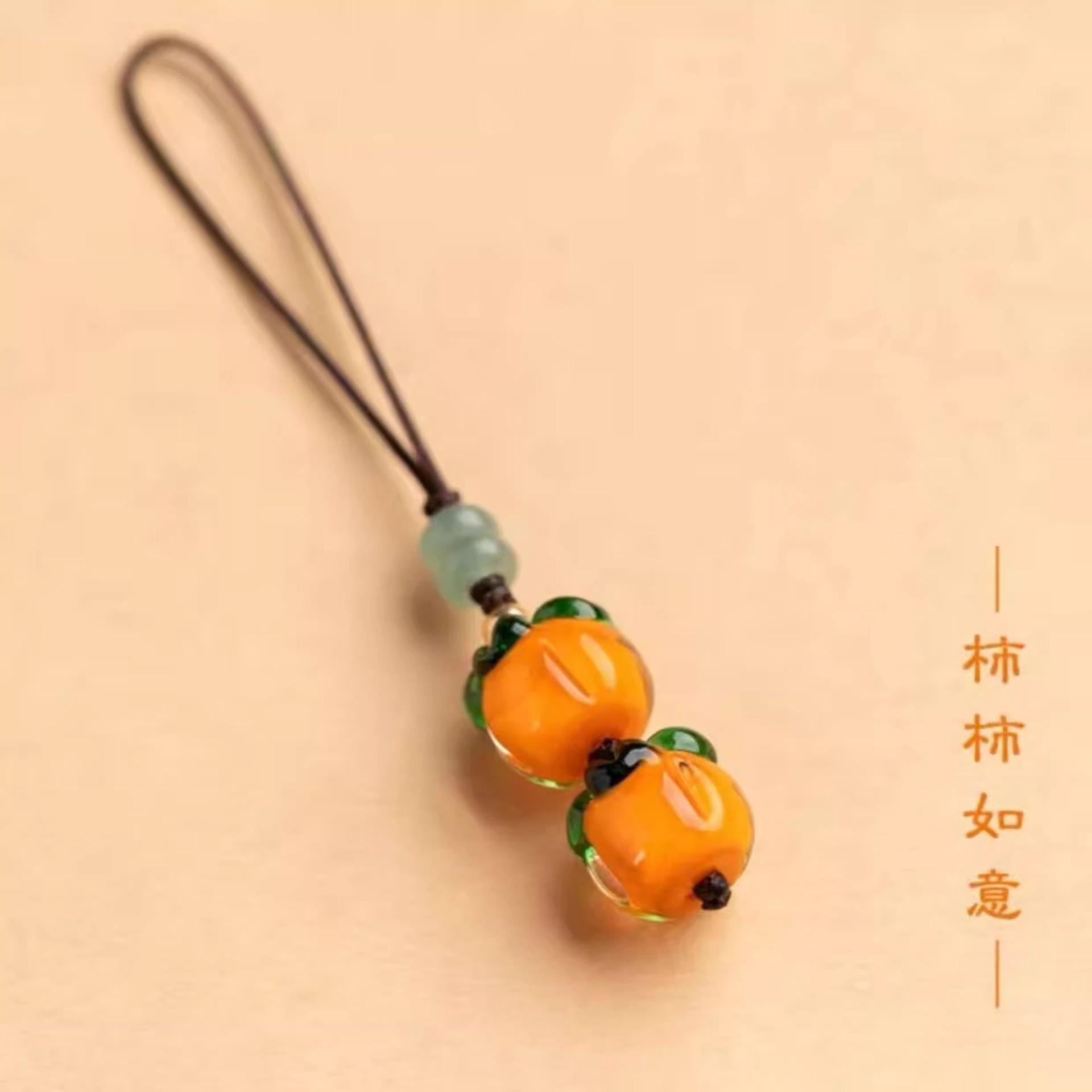 柿柿如意琉璃钥匙扣原创小众手机挂件创意女生包包挂饰U盘小挂坠
