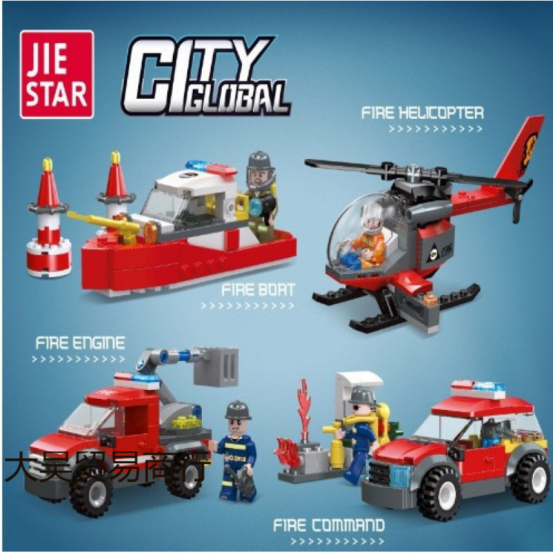 Jiexing 都市消防警察車飛行機小粒子子供のビルディングブロック男の子のおもちゃクロスボーダー卸売