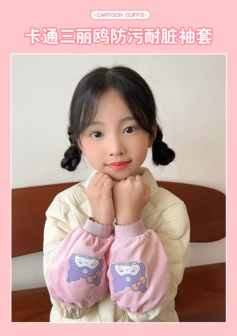 秋冬季小女孩毛绒套袖女童防污儿童库洛米袖套防脏宝宝羽绒服护袖