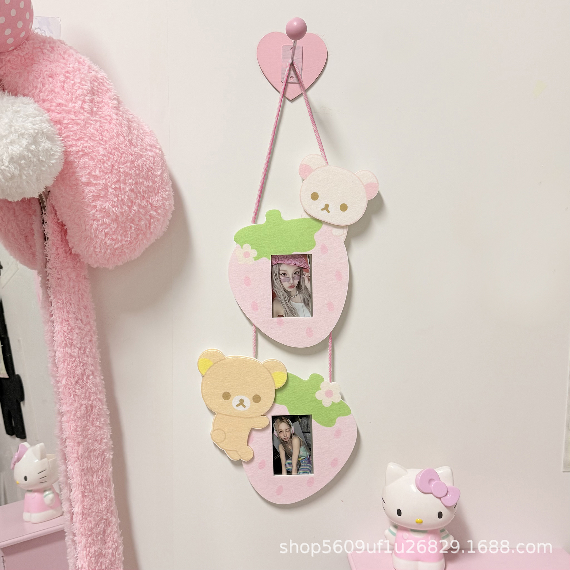 高颜值卡通草莓小熊创意组合挂墙可爱连体相框三寸小卡卧室照片装