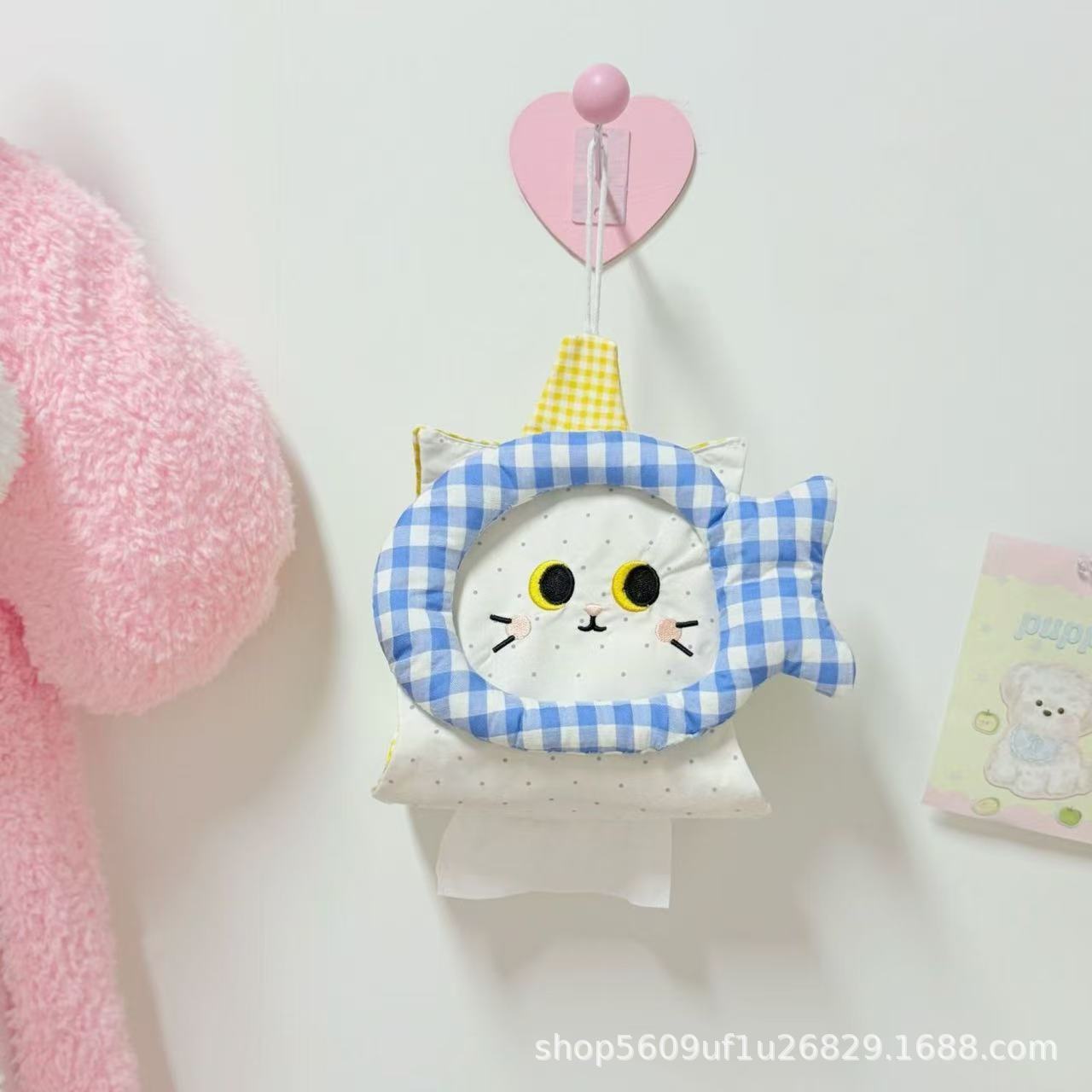 复古卡通小猫抽纸袋壁挂式布艺手作纸巾套居家宿舍车载高颜值创意