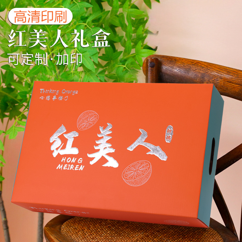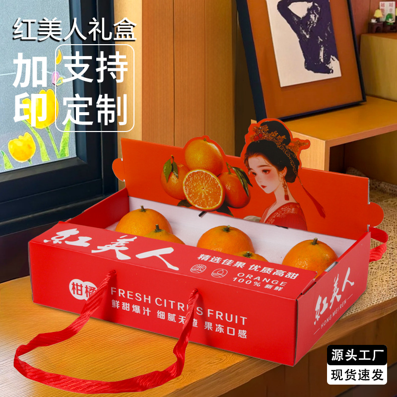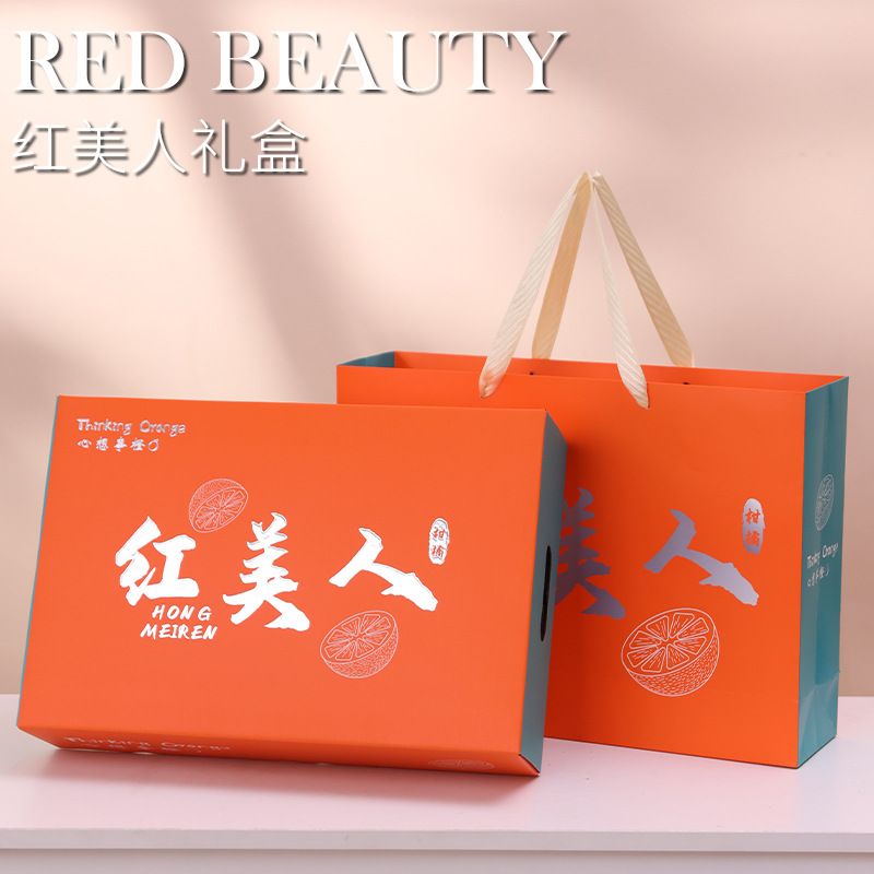 浙江象山紅美人礼箱空箱箔押し技術通用柑橘手提げ包装箱ギフトボックス卸売り