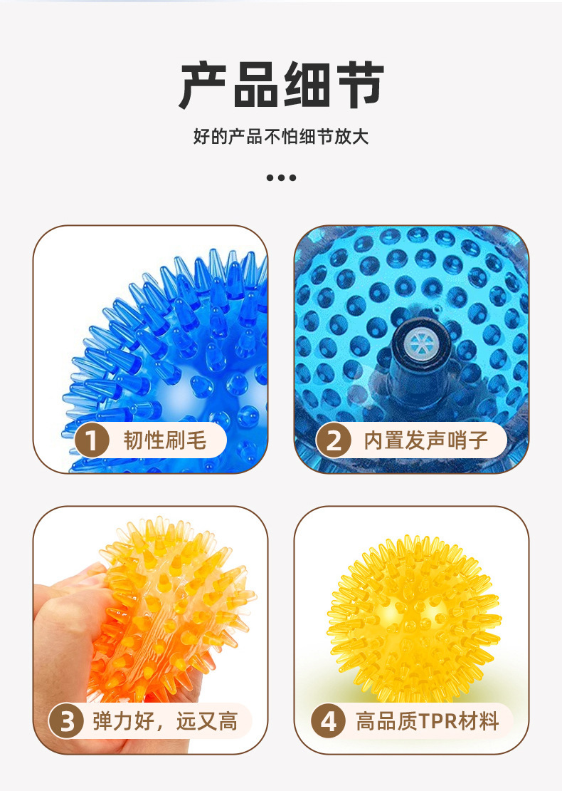 狗狗玩具刺球耐咬发声球有声音自嗨解闷洁齿大狗球TPR吱吱叫跨境