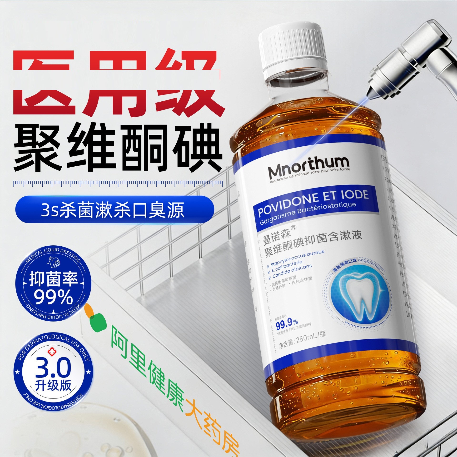 聚维酮碘漱口水消杀菌除口臭牙结石持久留香医用碘伏含漱液牙周炎