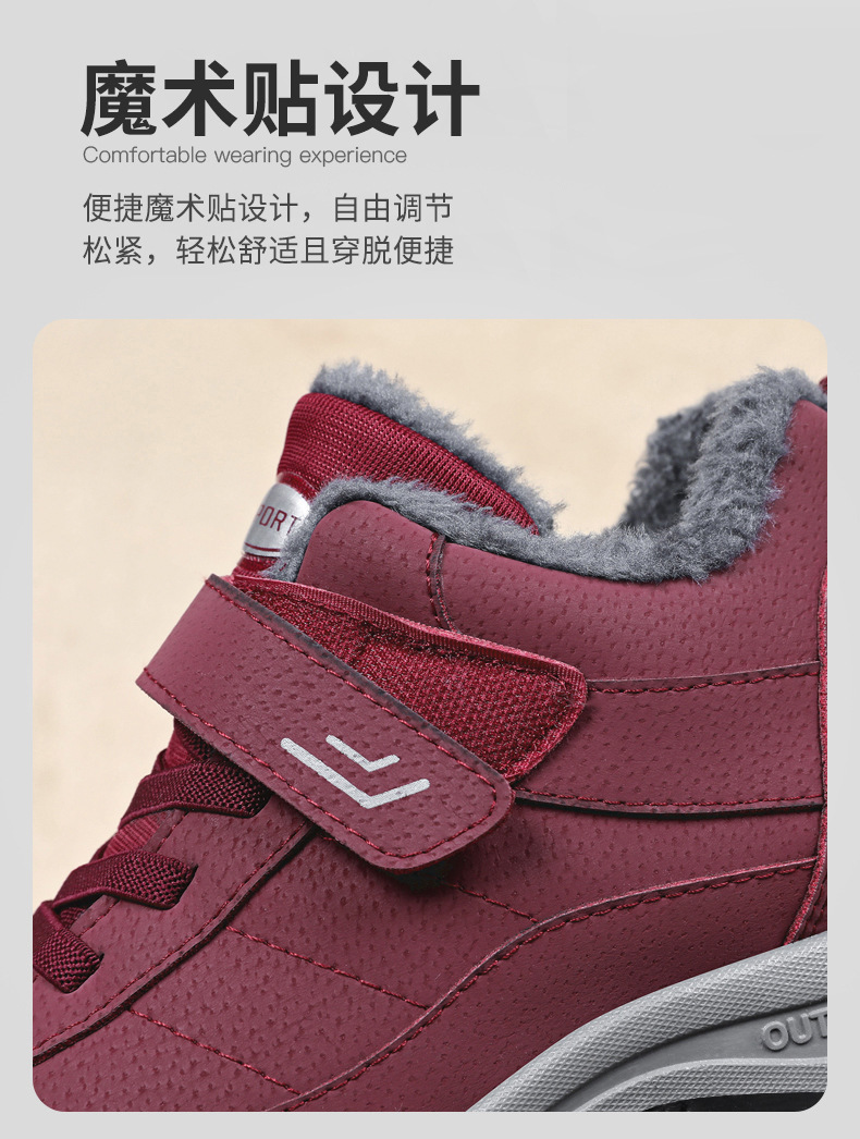 女士雪地靴冬季加绒加厚防滑雪地靴宽楦防水健步棉靴魔术贴代发