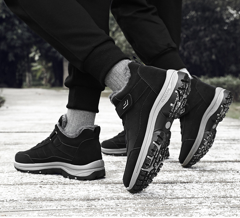 中高年健歩靴冬の新型男性ベルベットは雪地靴の父綿靴の滑り止め柔らかい底の登山靴を厚くした
