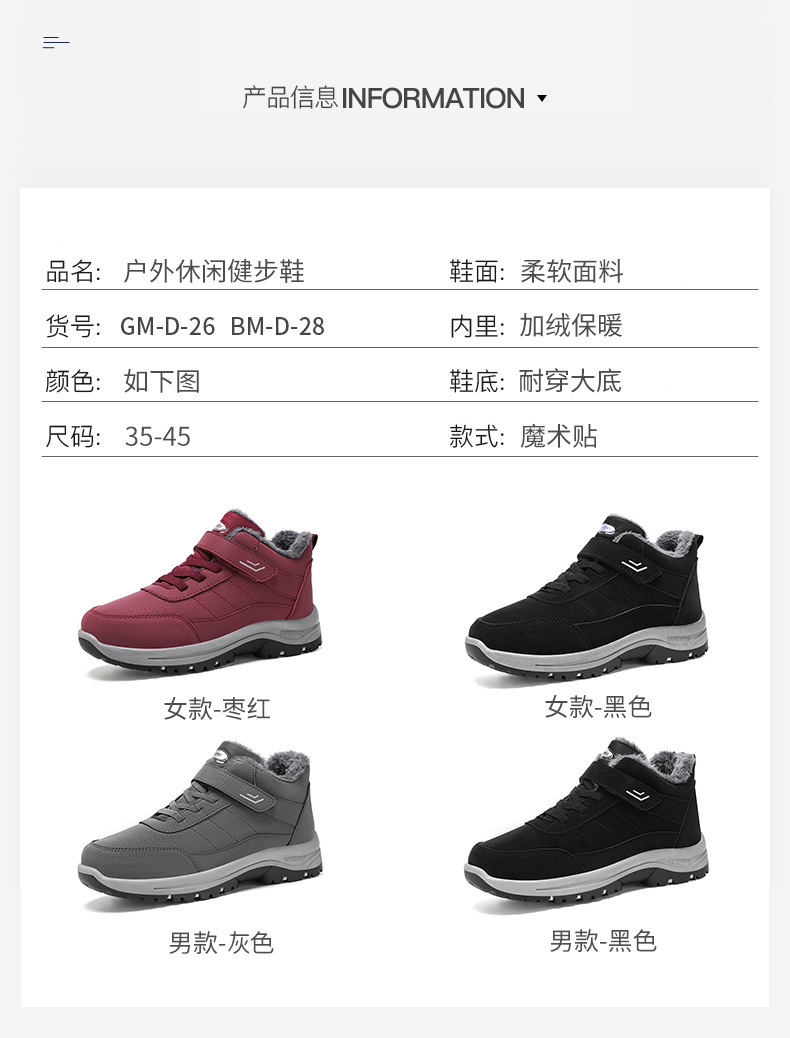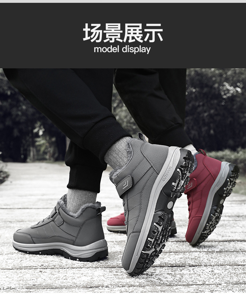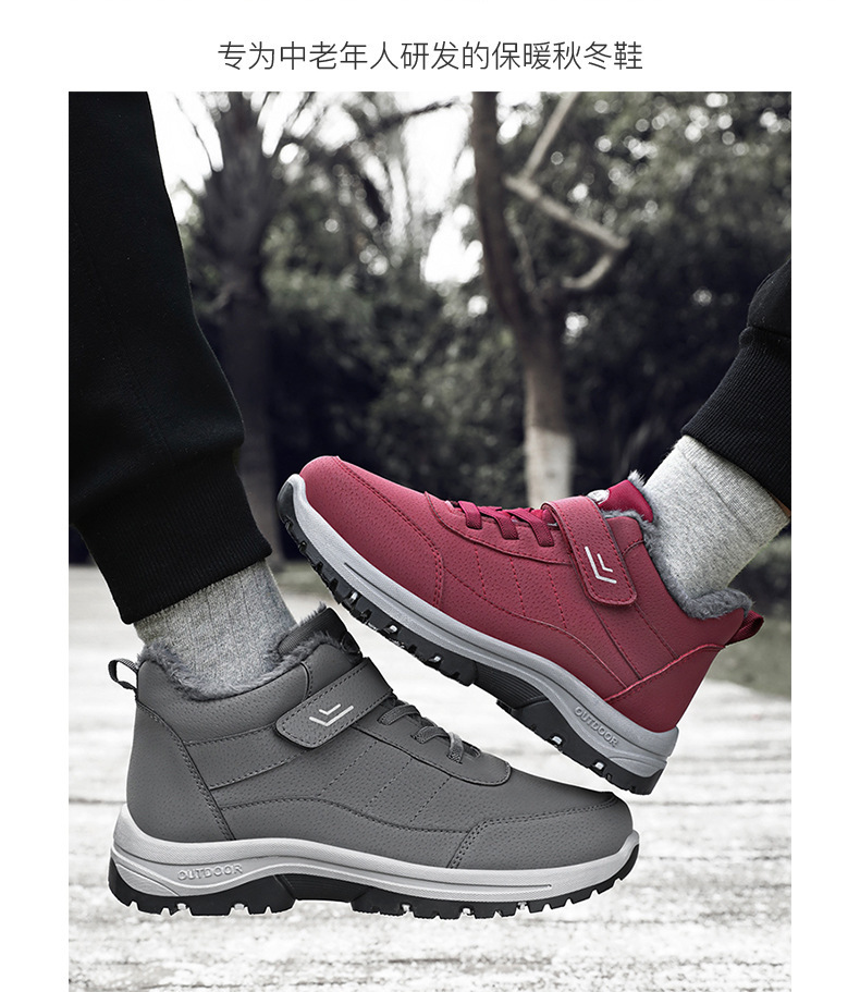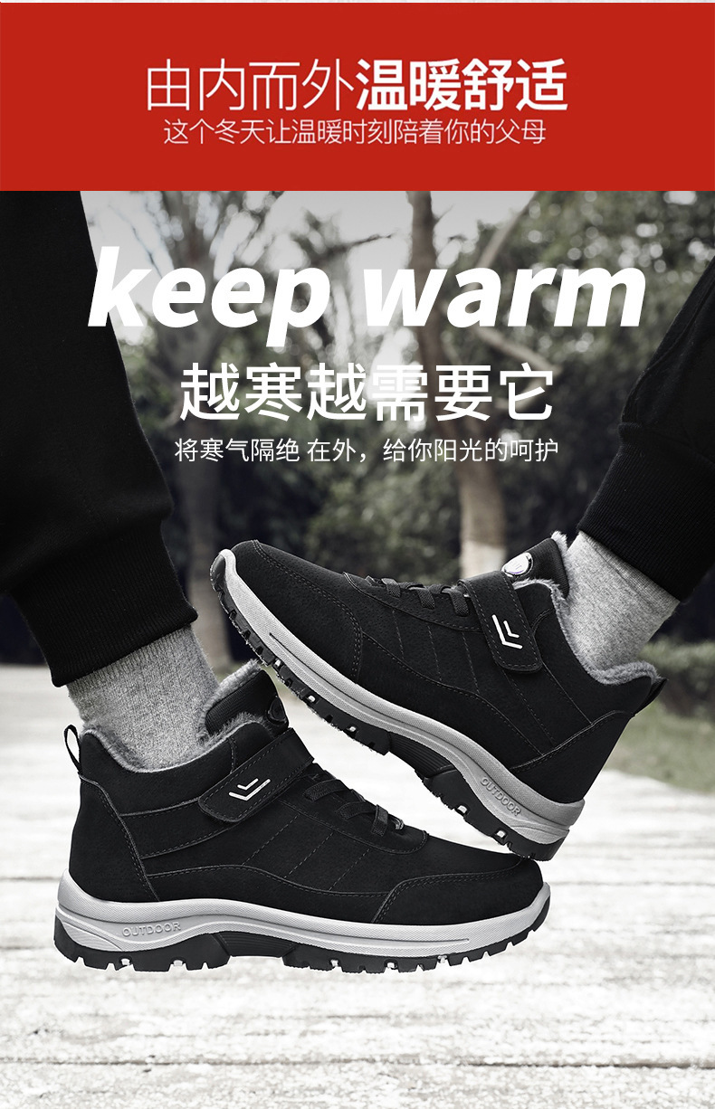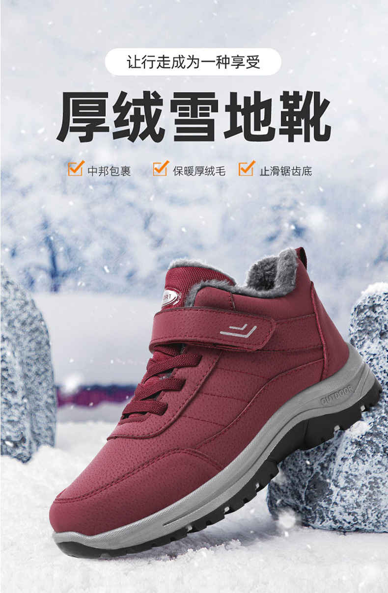 新型老人靴男秋冬高組加絨厚綿靴運動滑り止め健歩靴母雪地靴カップル