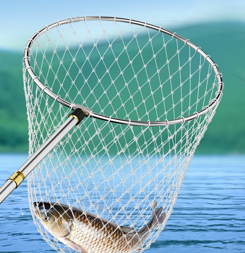 不锈钢抄网全套伸缩抄网杆折叠捞鱼网兜钓鱼抄网头抄网兜渔具批发
