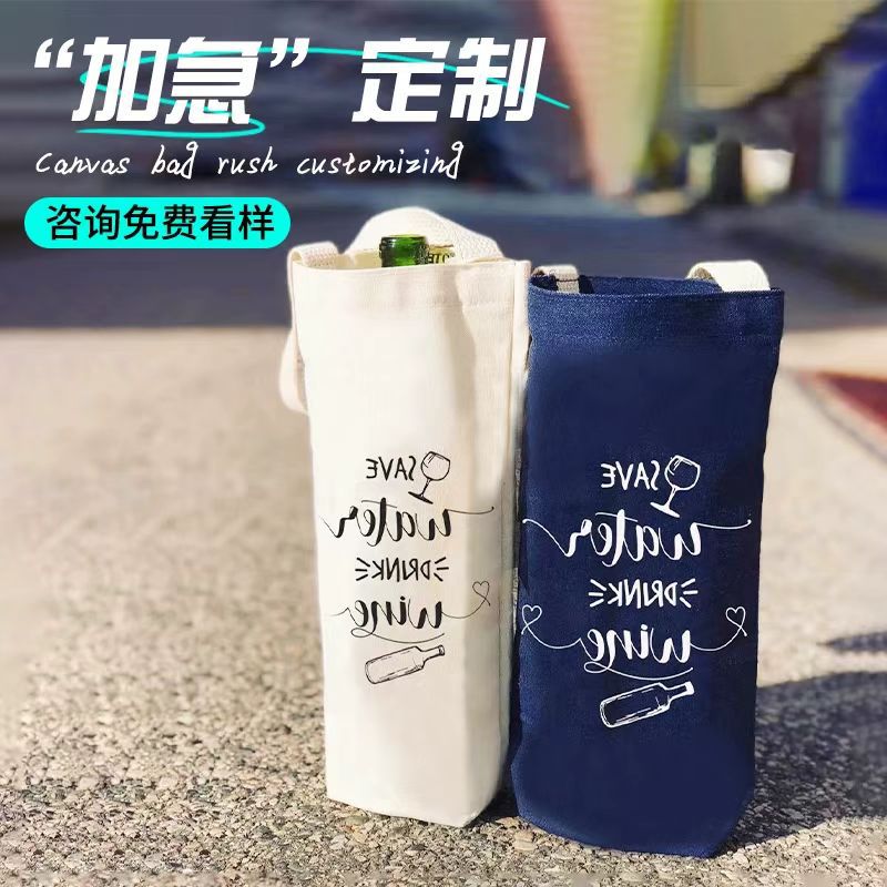 スポット純綿キャンバス赤ワインハンドバッグ、シンプルな白、手洗い可能なシングルワインギフトバッグ、ダブルワインバッグ