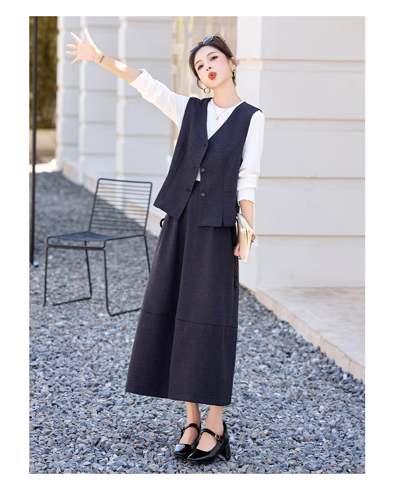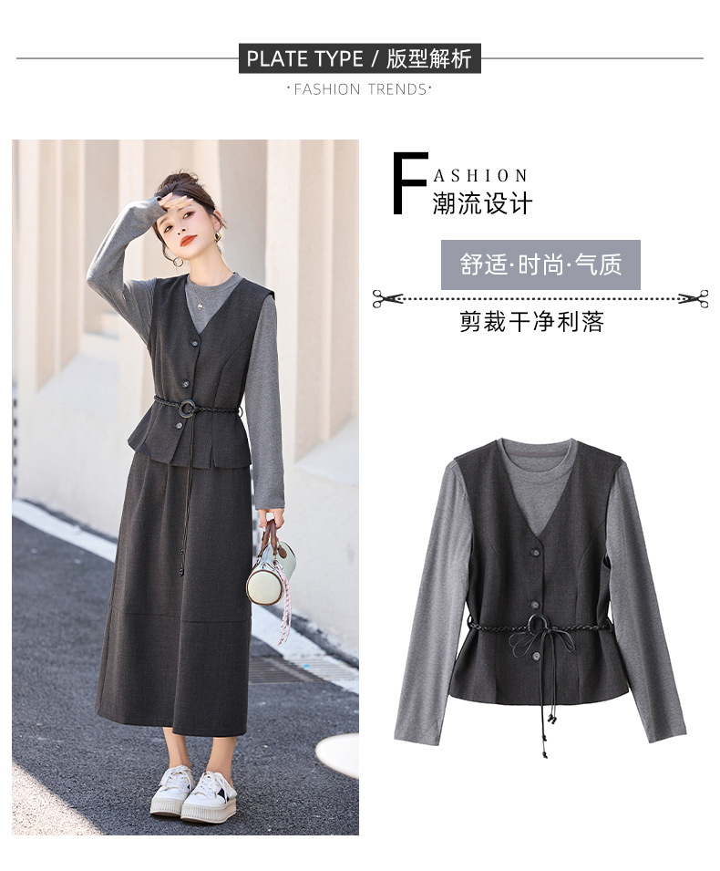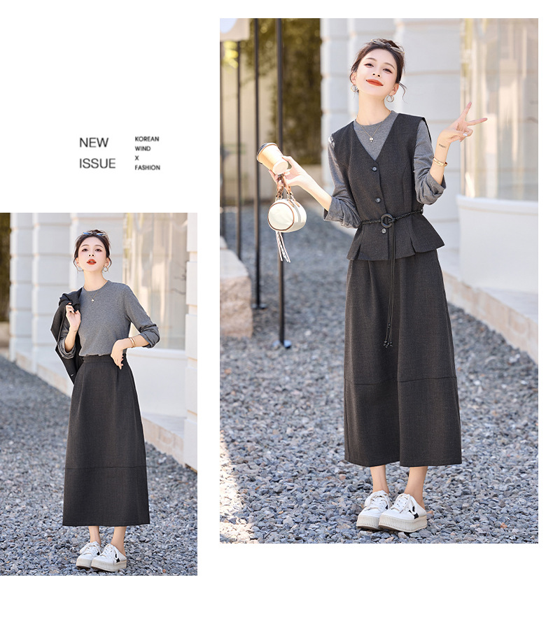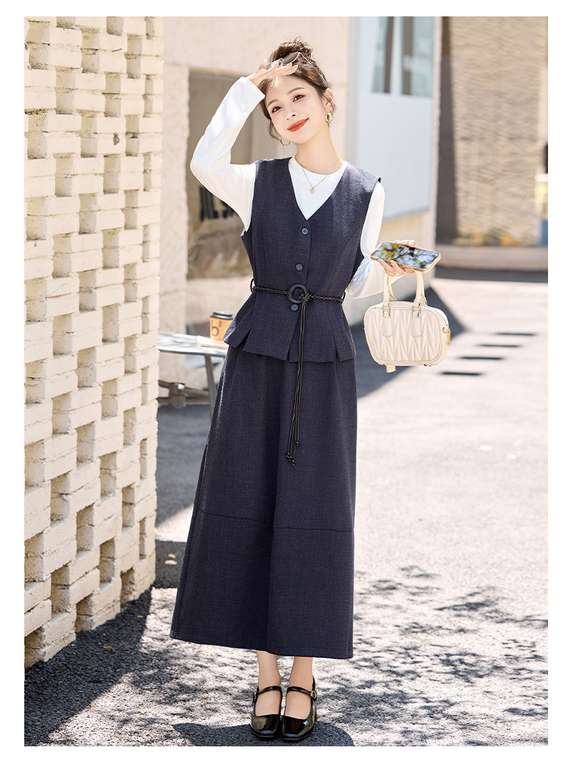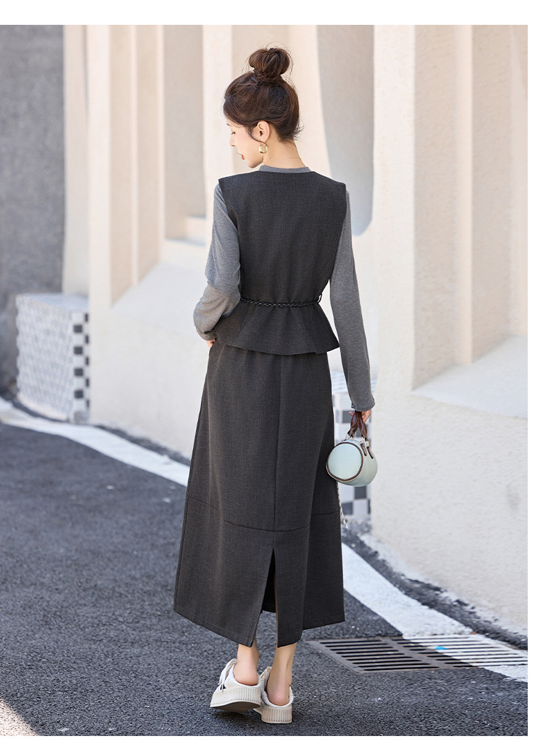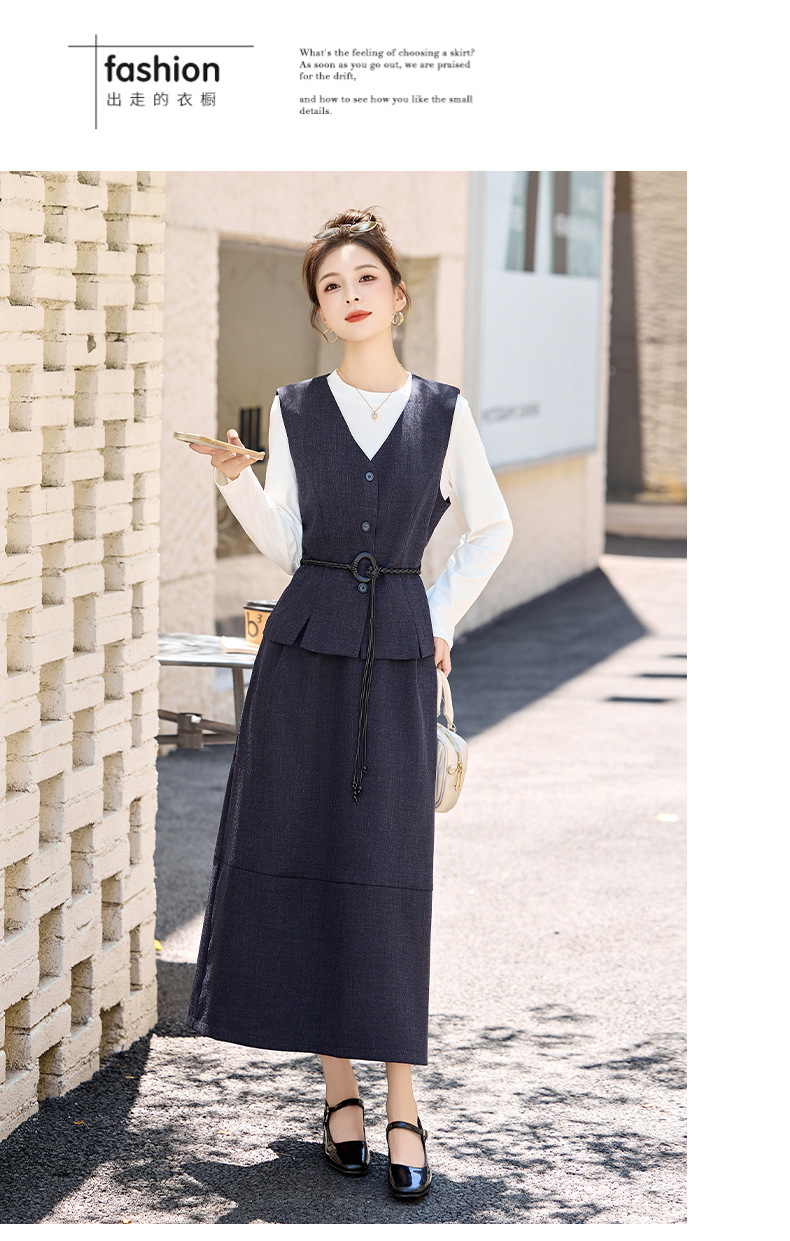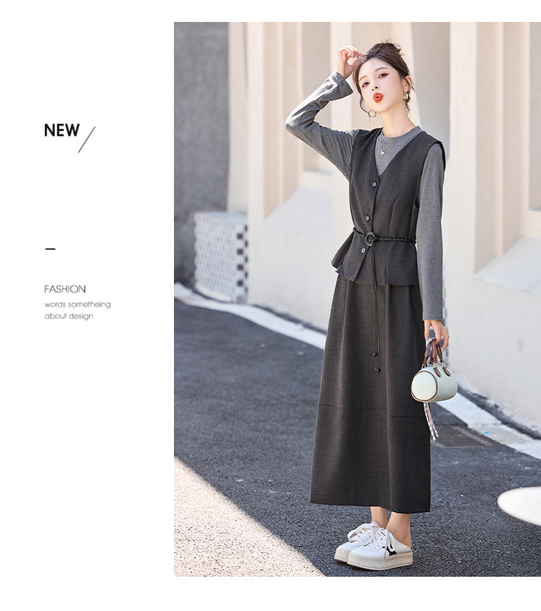 时尚套装2025秋季新款女装系带马甲长袖T恤中长裙三件套裙 CY8162