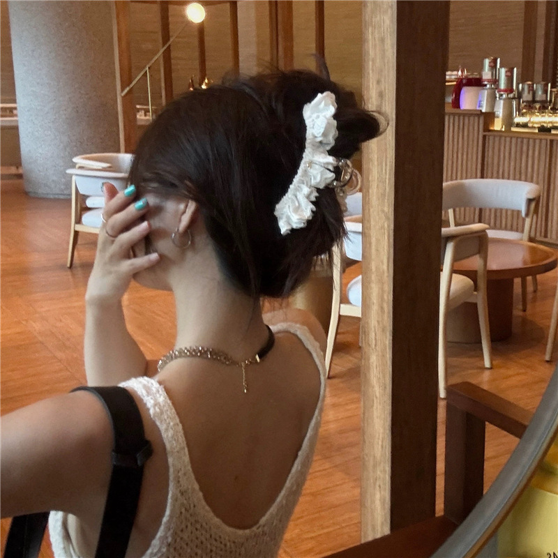 韩国新款轻奢高级感弯日形蕾丝抓夹扎发鲨鱼夹后脑勺夹子头饰发饰
