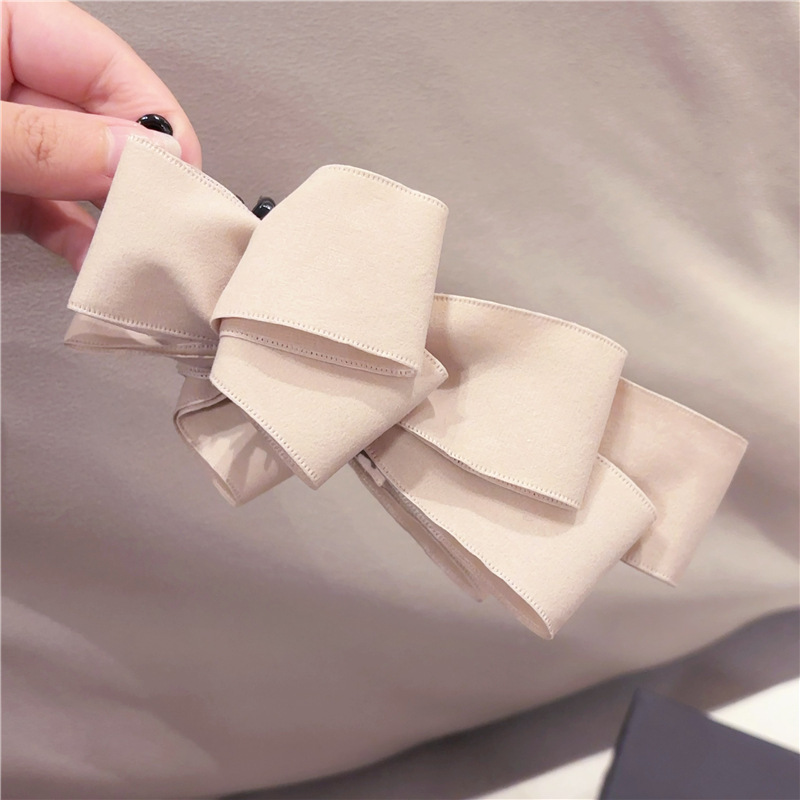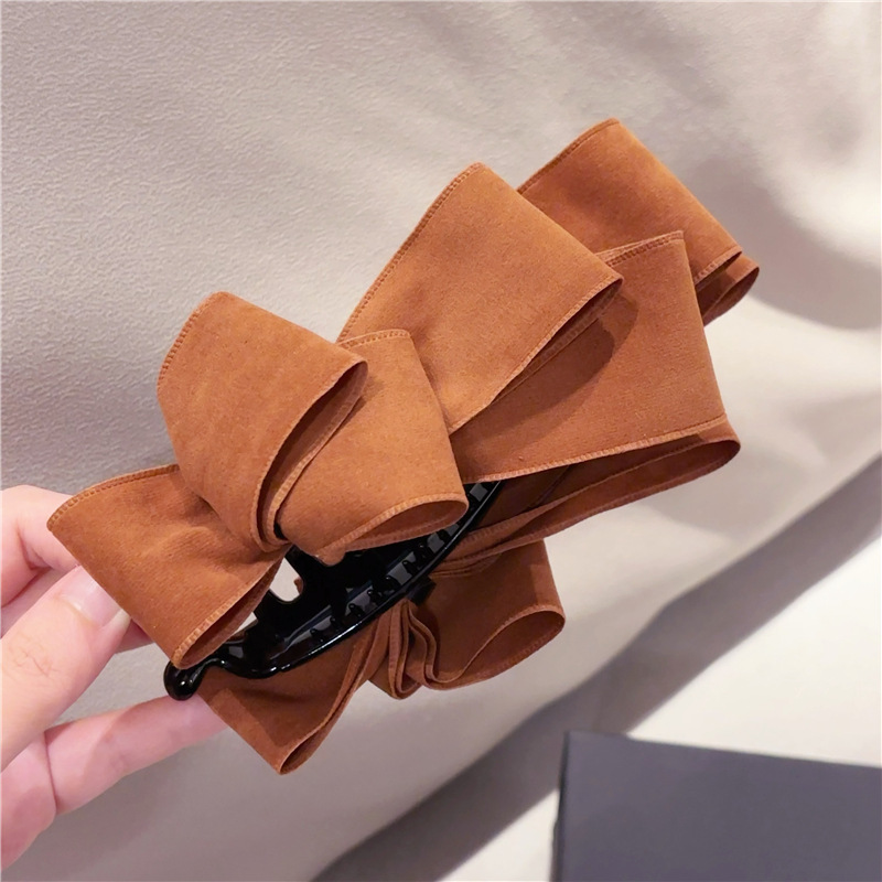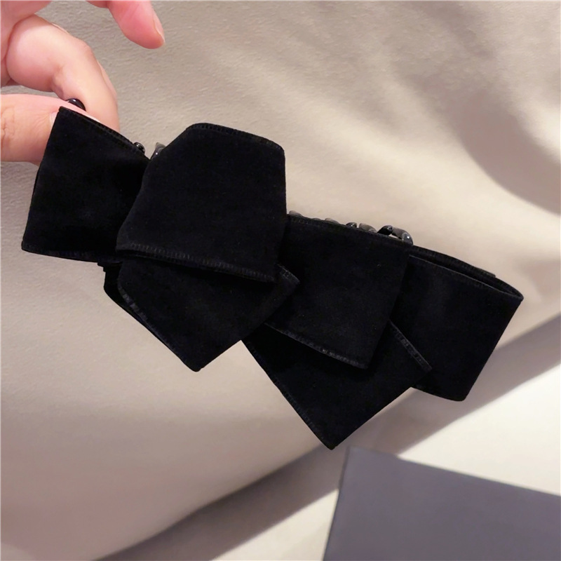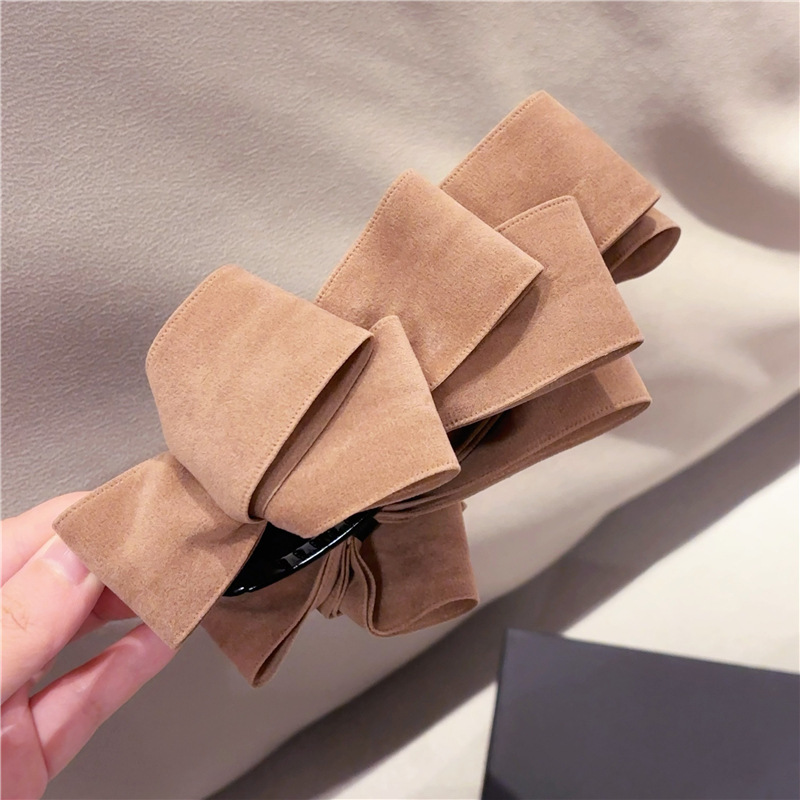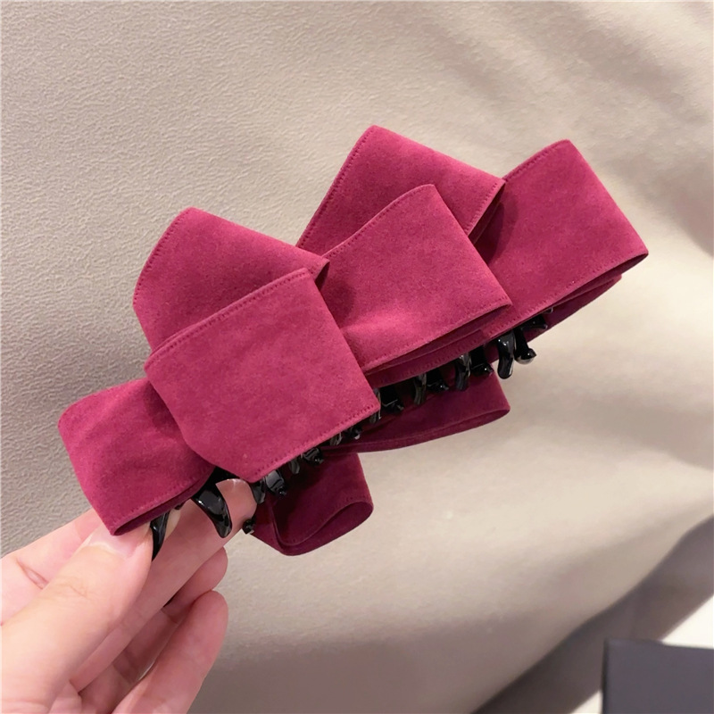 韩国新款简约麂皮绒蝴蝶结后脑勺竖夹马尾夹向下香蕉夹头饰发饰女